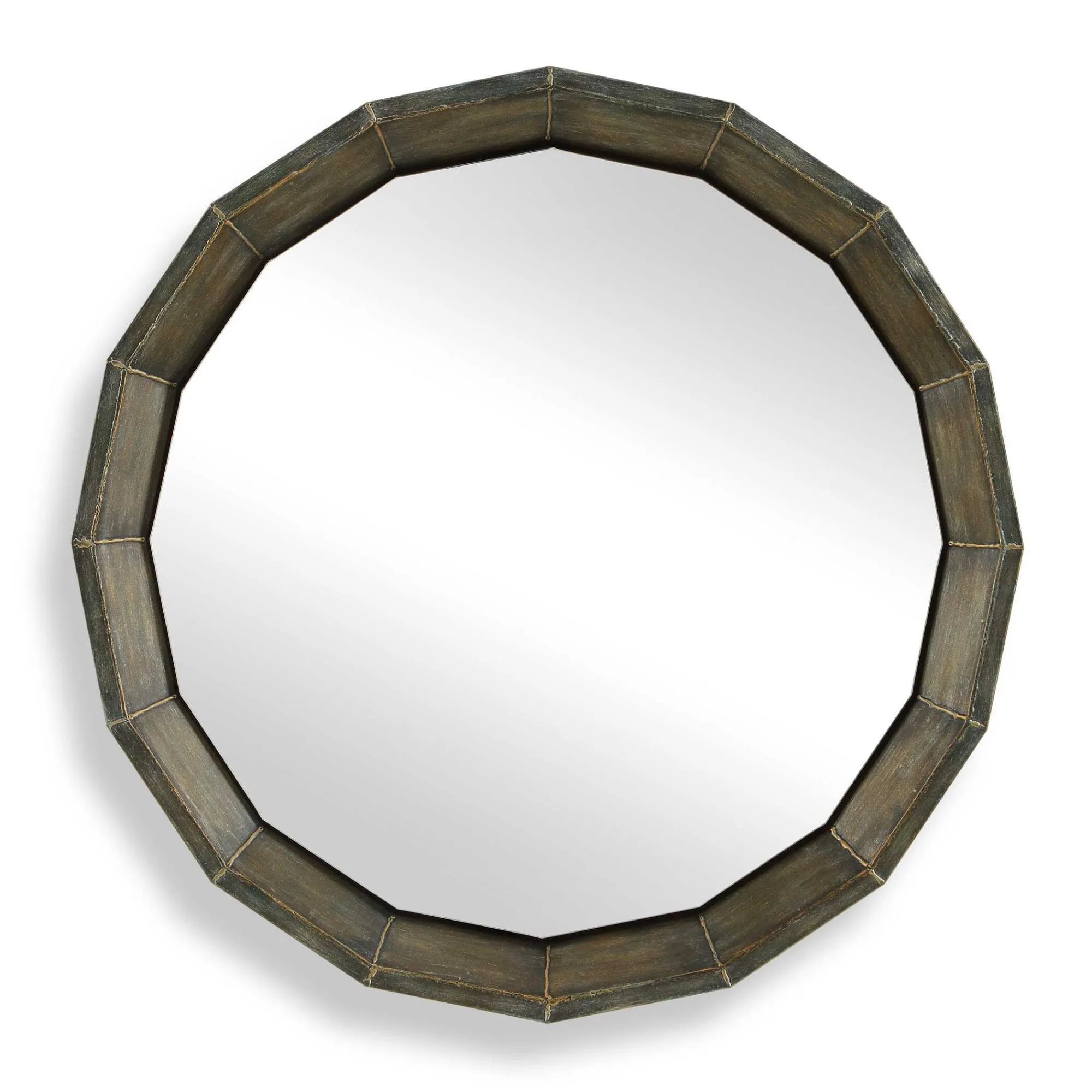 This Distinctive Mirror Features A Unique Faceted Frame, Finished In A Rich Rubbed Bronze With Exposed Welded Edges, Offering A Striking Blend Of Modern Design And Rustic Elegance.