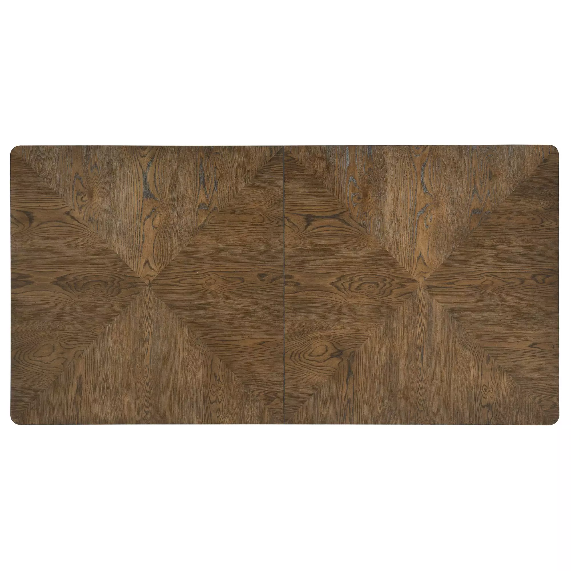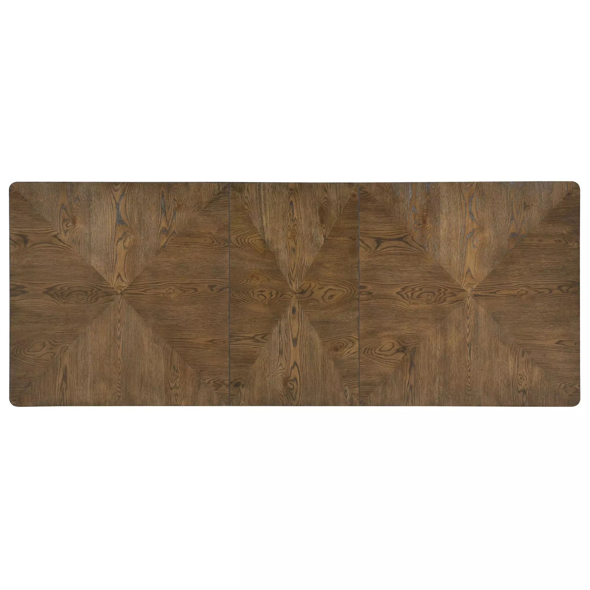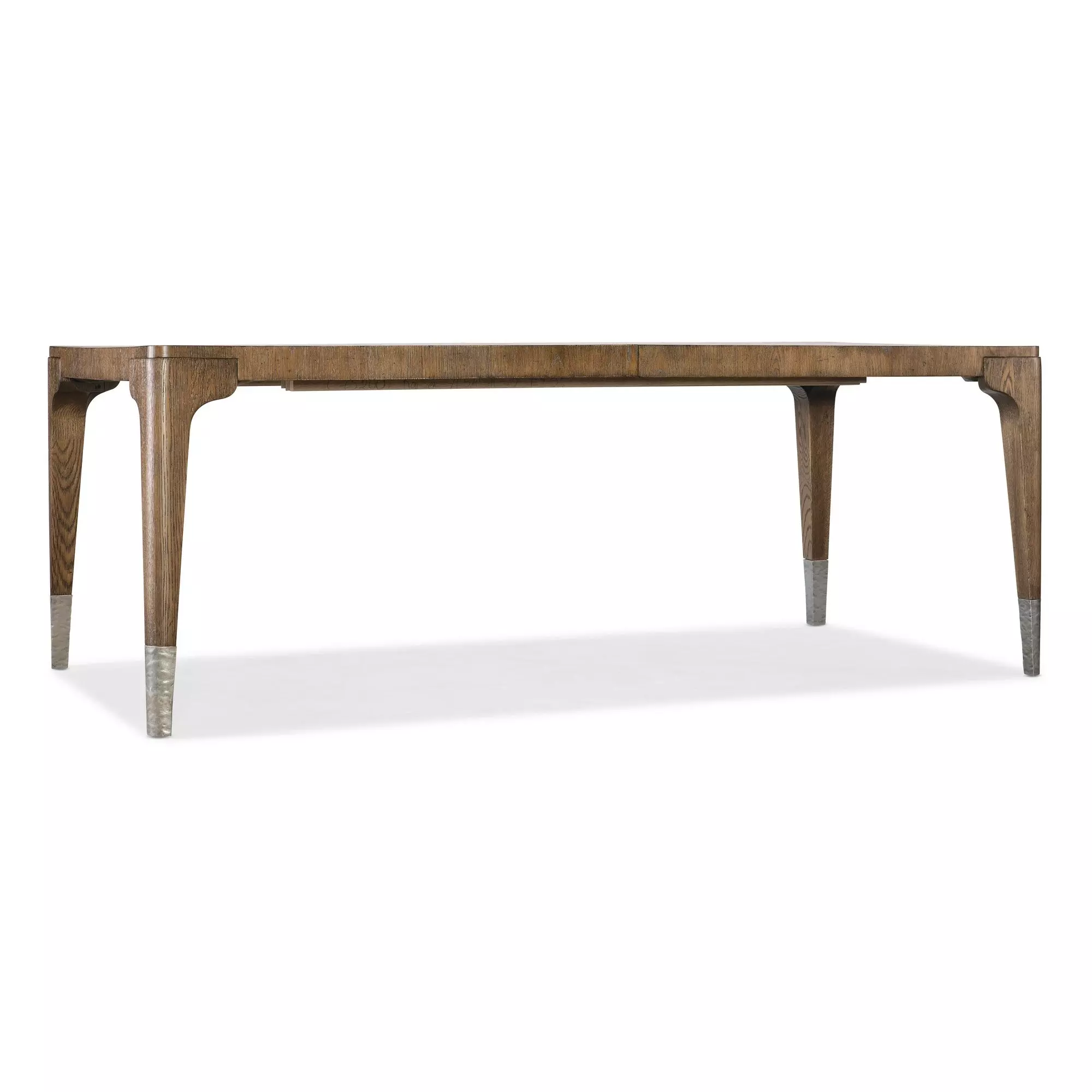 Inspired by downtown urban living, the shapely and refined Chapman Leg Table is crafted of White Oak Veneers with a warm brown Sorrel finish that reveals the woodgrain. Metal ferrules in a forged pewter finish add a touch of craftsmanship. With one 24-inch leaf, the table extends to 106 inches to accommodate up to 8 guests.