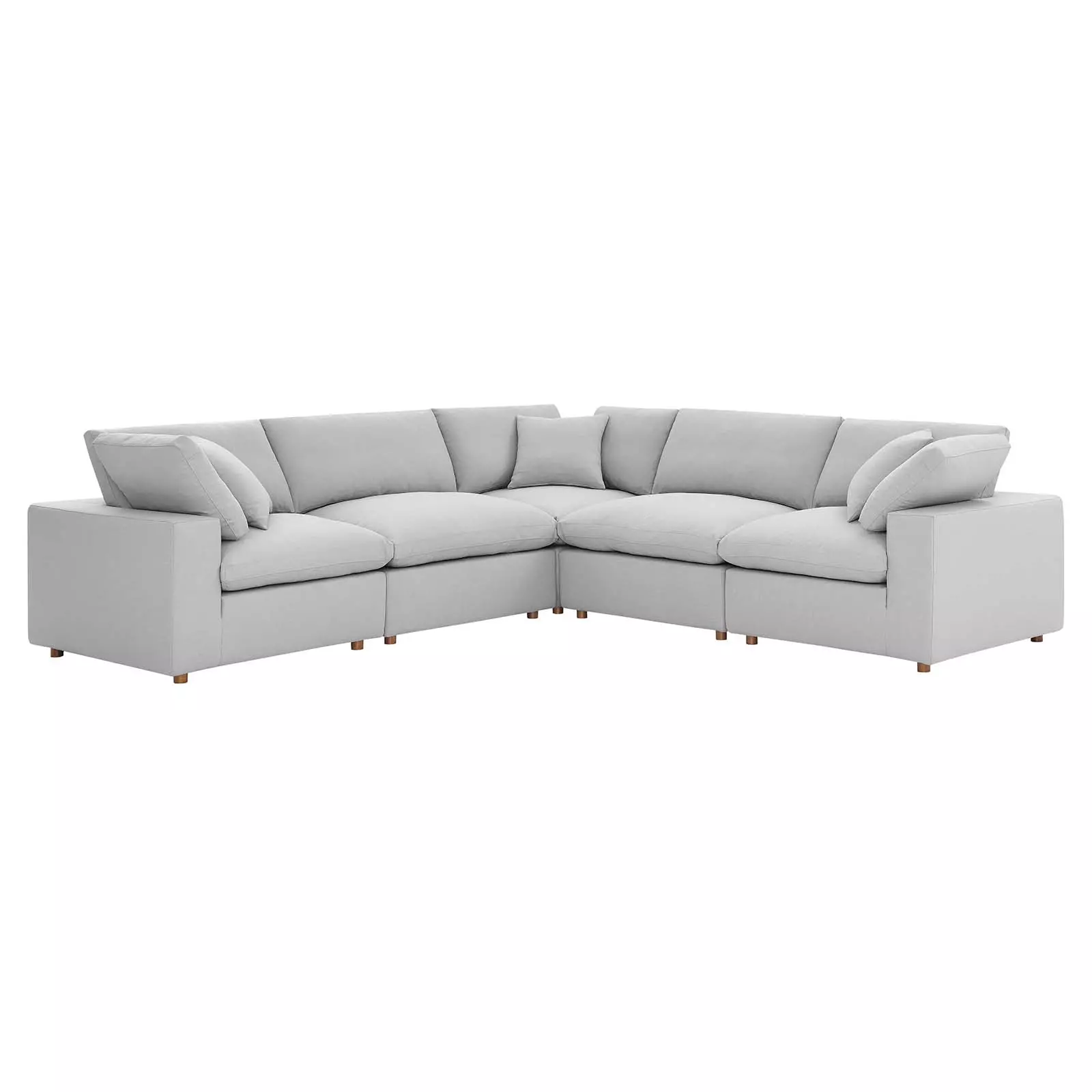 Modway Commix Down Filled Overstuffed 5-Piece Sectional Sofa in Light Gray