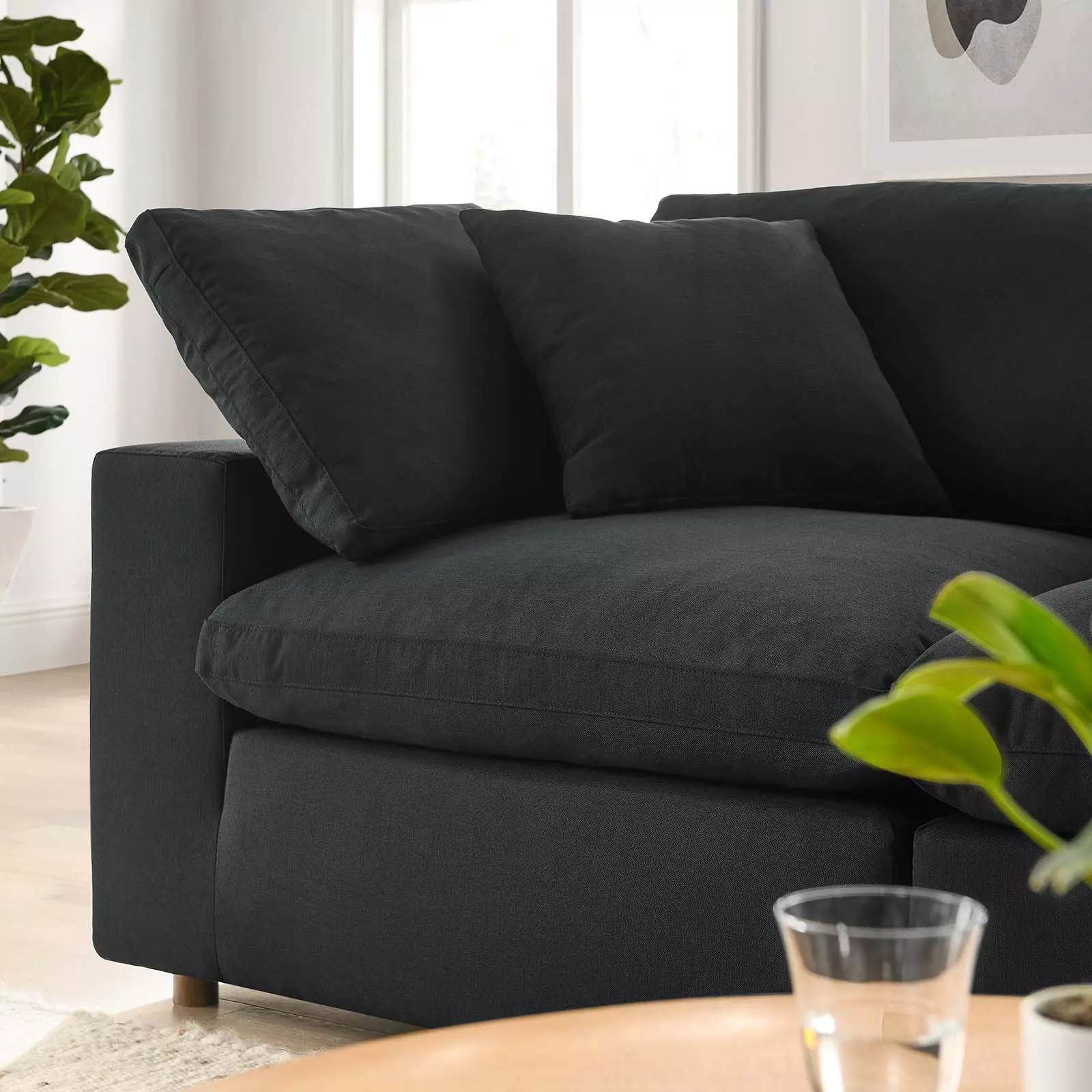 Commix comes with generously padded down feather and cotton cushions, and padded foam bases, making this sectional sofa collection perfect for the living room, family room, or game room. Made for sprawling out or curling up, Commix beckons you and guests to sit and stay a while. Includes plastic foot glides.