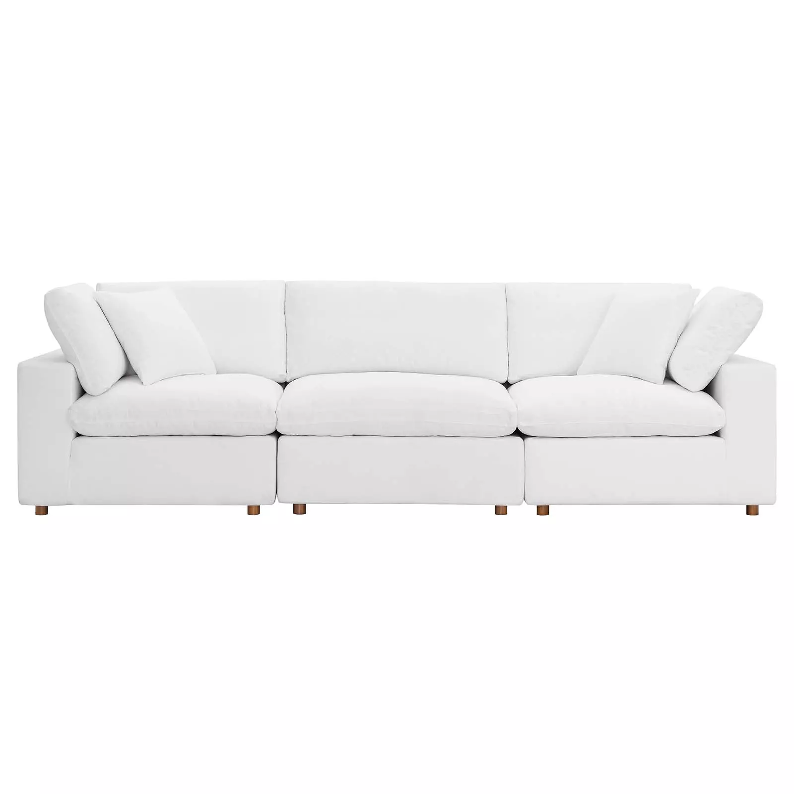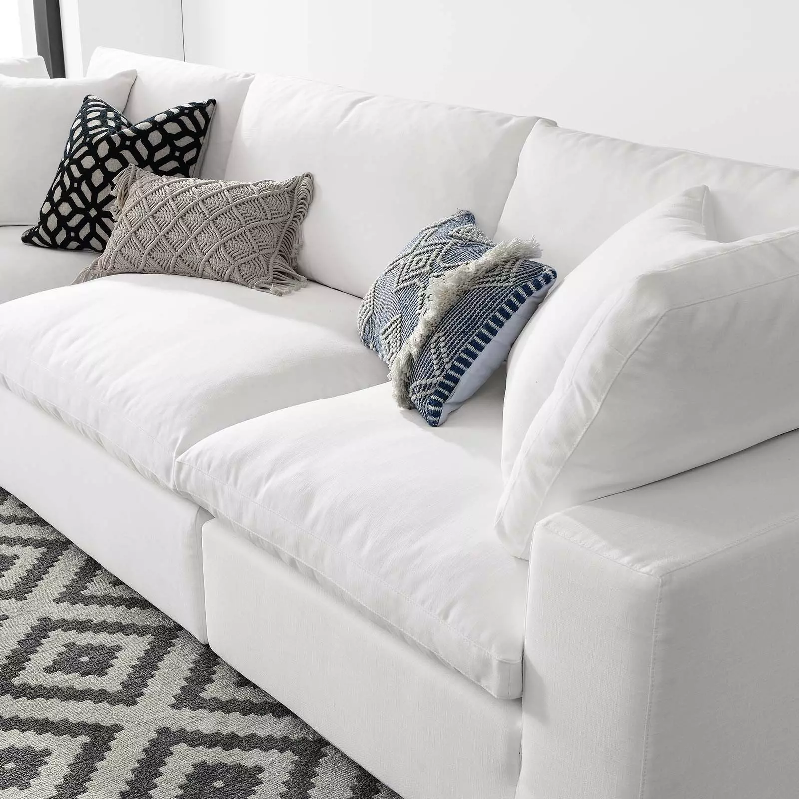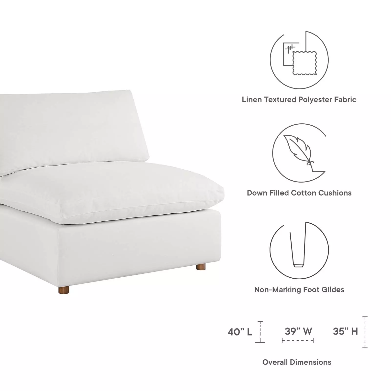 A haven for cozy relaxation, Commix features plush comfort, clean-lined design, and spacious profile, that makes an attractive statement in the modern home. Upholstered in polyester fabric that grants a luxe linen texture, this contemporary sofa comes with solid wood construction and cotton and down cushions for a luxurious sink-in feel. Commix comes with generously padded down feather and cotton cushions, and padded foam bases, making this sectional sofa collection perfect for the living room, family room, or game room. Made for sprawling out or curling up, Commix beckons you and guests to sit and stay a while. Includes plastic foot glides. Each Seat Weight Capacity: 331 lbs. Set Includes: One - Commix Down Filled Overstuffed Armless Chair Two - Commix Down Filled Overstuffed Corner Chair