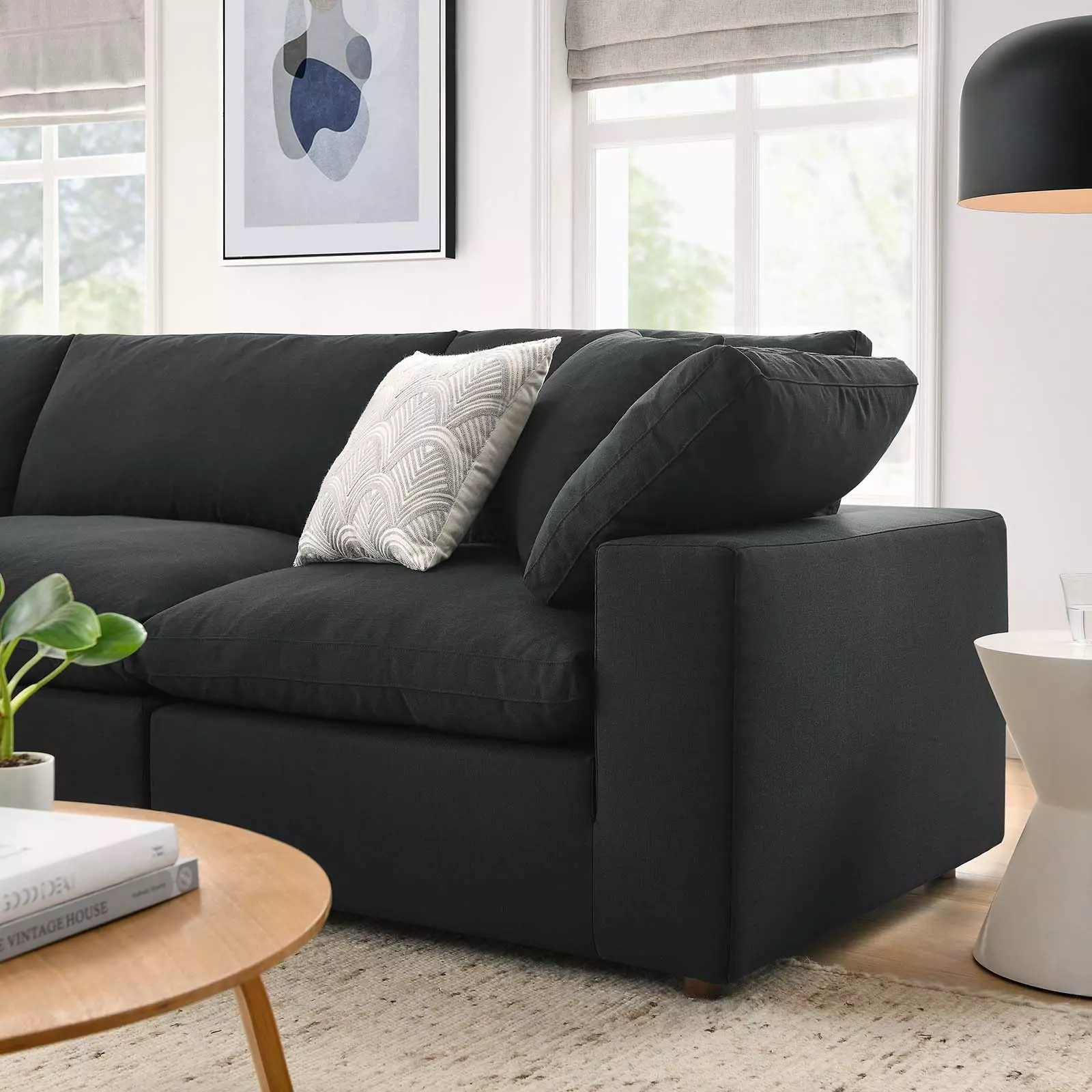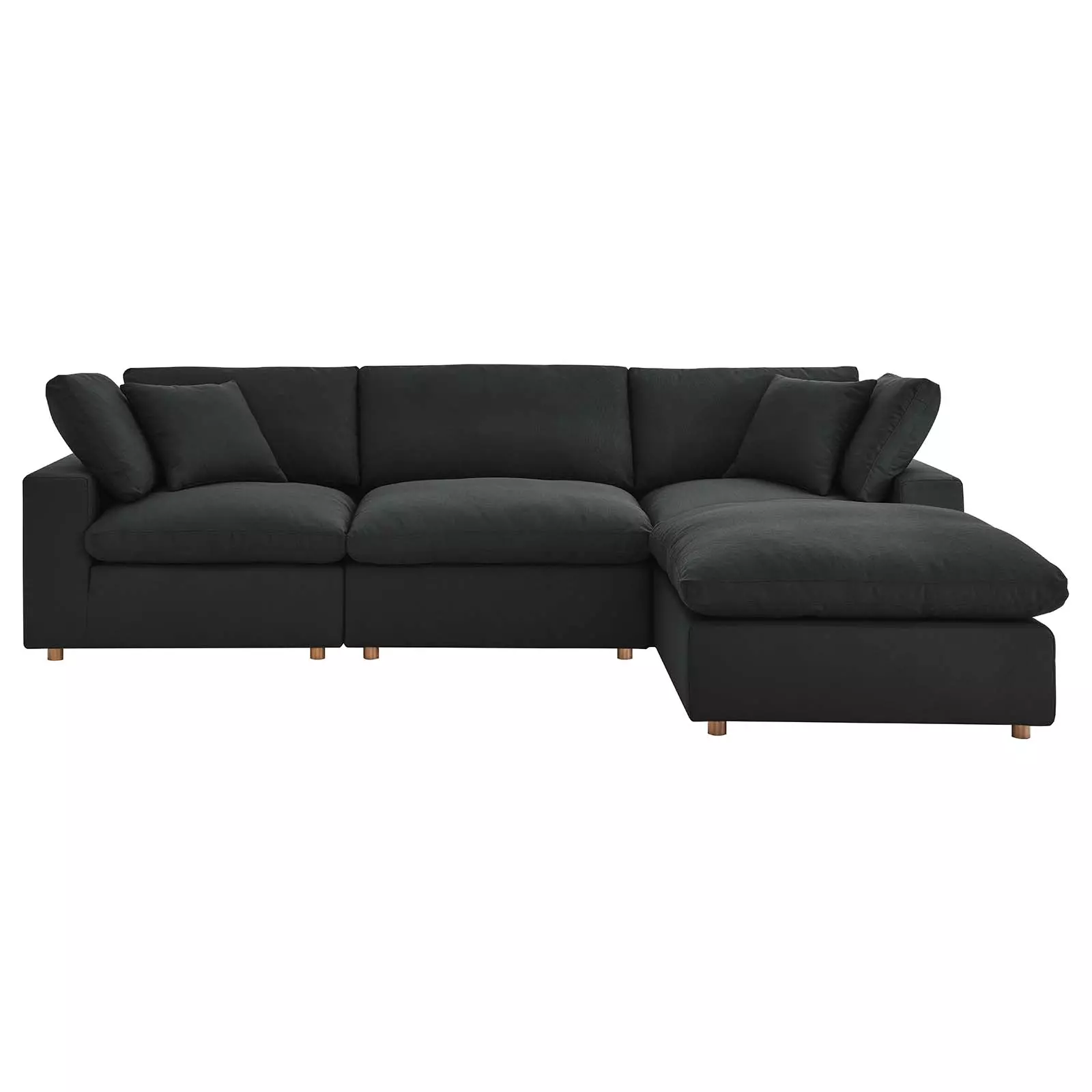 Commix Down Filled Overstuffed 4 Piece Sectional Sofa Set in Black