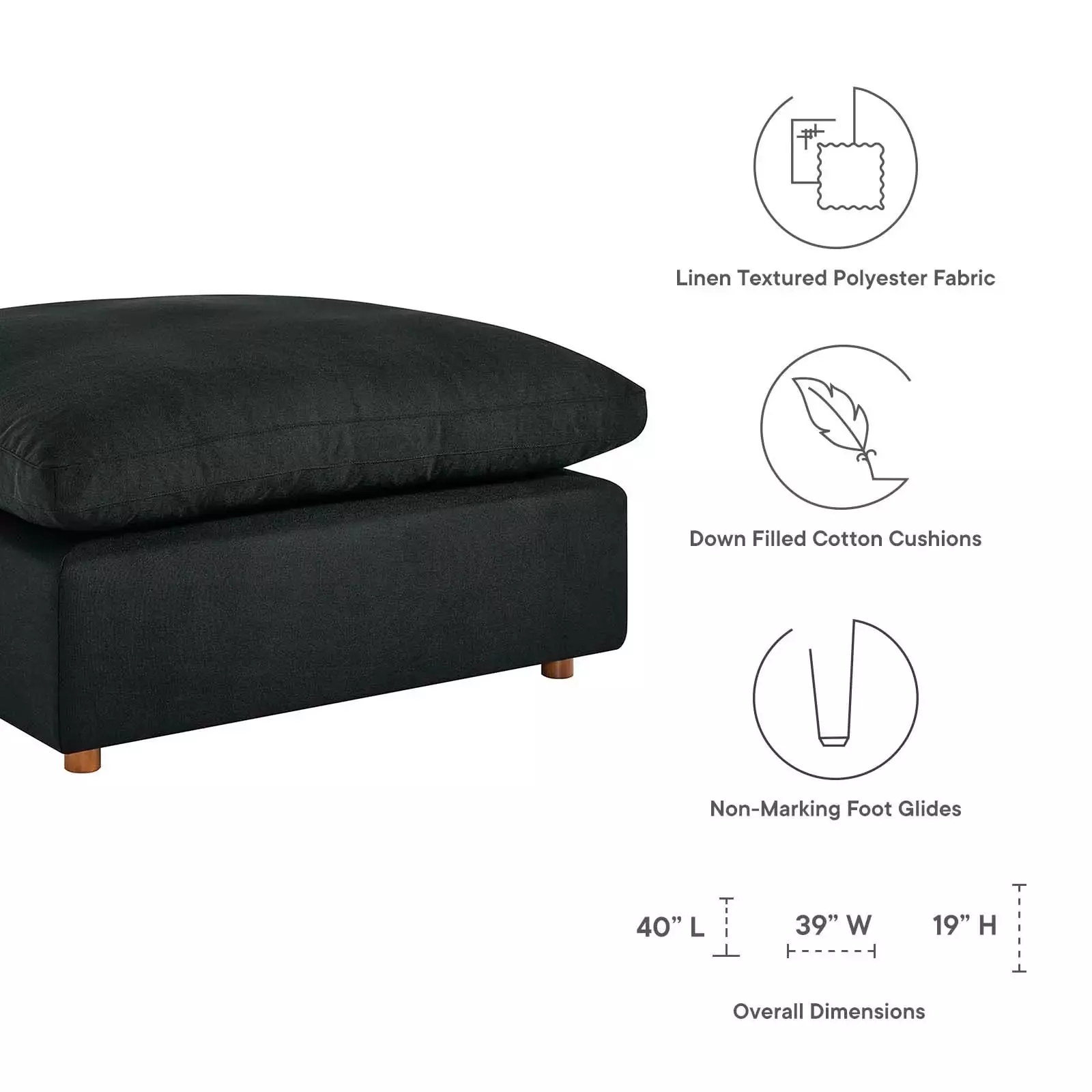 A haven for cozy relaxation, Commix features plush comfort, clean-lined design, and spacious profile, that makes an attractive statement in the modern home. Upholstered in polyester fabric that grants a luxe linen texture, this contemporary sectional sofa comes with solid wood construction and cotton and down cushions for a luxurious sink-in feel. Commix comes with generously padded down feather and cotton cushions, and padded foam bases, making this sectional sofa collection perfect for the living room, family room, or game room. Made for sprawling out or curling up, Commix beckons you and guests to sit and stay a while. Includes plastic foot glides. Corner piece includes two back pillows and a throw pillow.