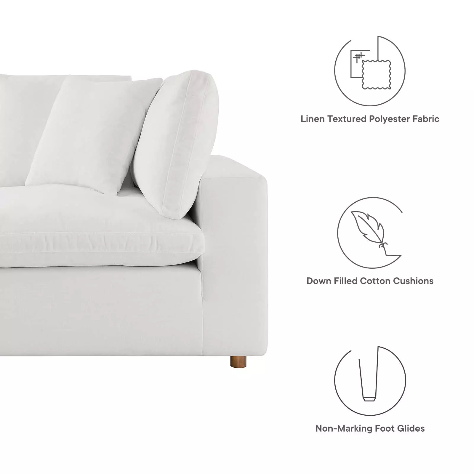 A haven for cozy relaxation, Commix features plush comfort, clean-lined design, and spacious profile, that makes an attractive statement in the modern home. Upholstered in polyester fabric that grants a luxe linen texture, this contemporary sofa comes with solid wood construction and cotton and down cushions for a luxurious sink-in feel. Commix comes with generously padded down feather and cotton cushions, and padded foam bases, making this sectional sofa collection perfect for the living room, family room, or game room. Made for sprawling out or curling up, Commix beckons you and guests to sit and stay a while. Includes plastic foot glides. Each Seat Weight Capacity: 331 lbs. Set Includes: Two - Commix Down Filled Overstuffed Armless Chair Two - Commix Down Filled Overstuffed Corner Chair