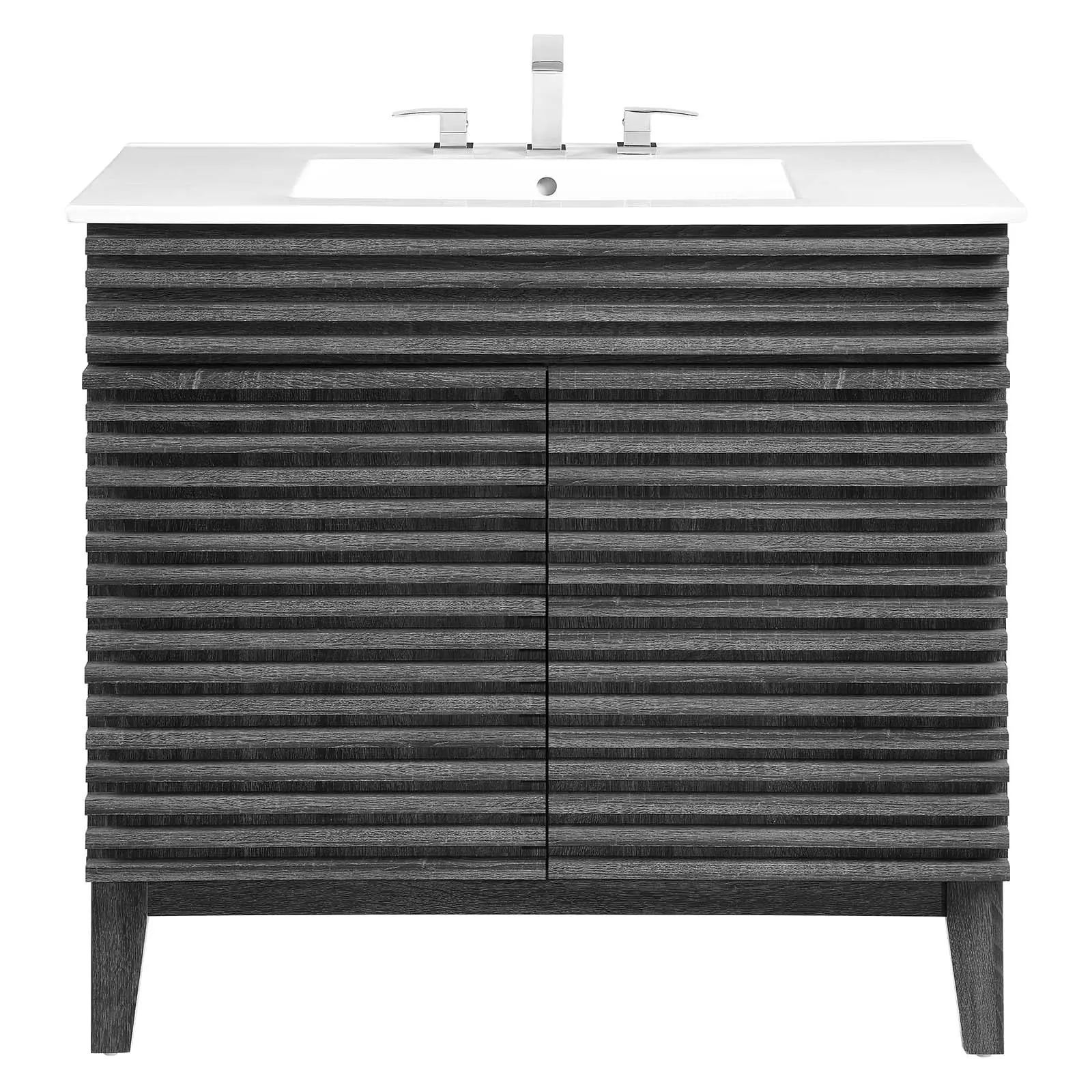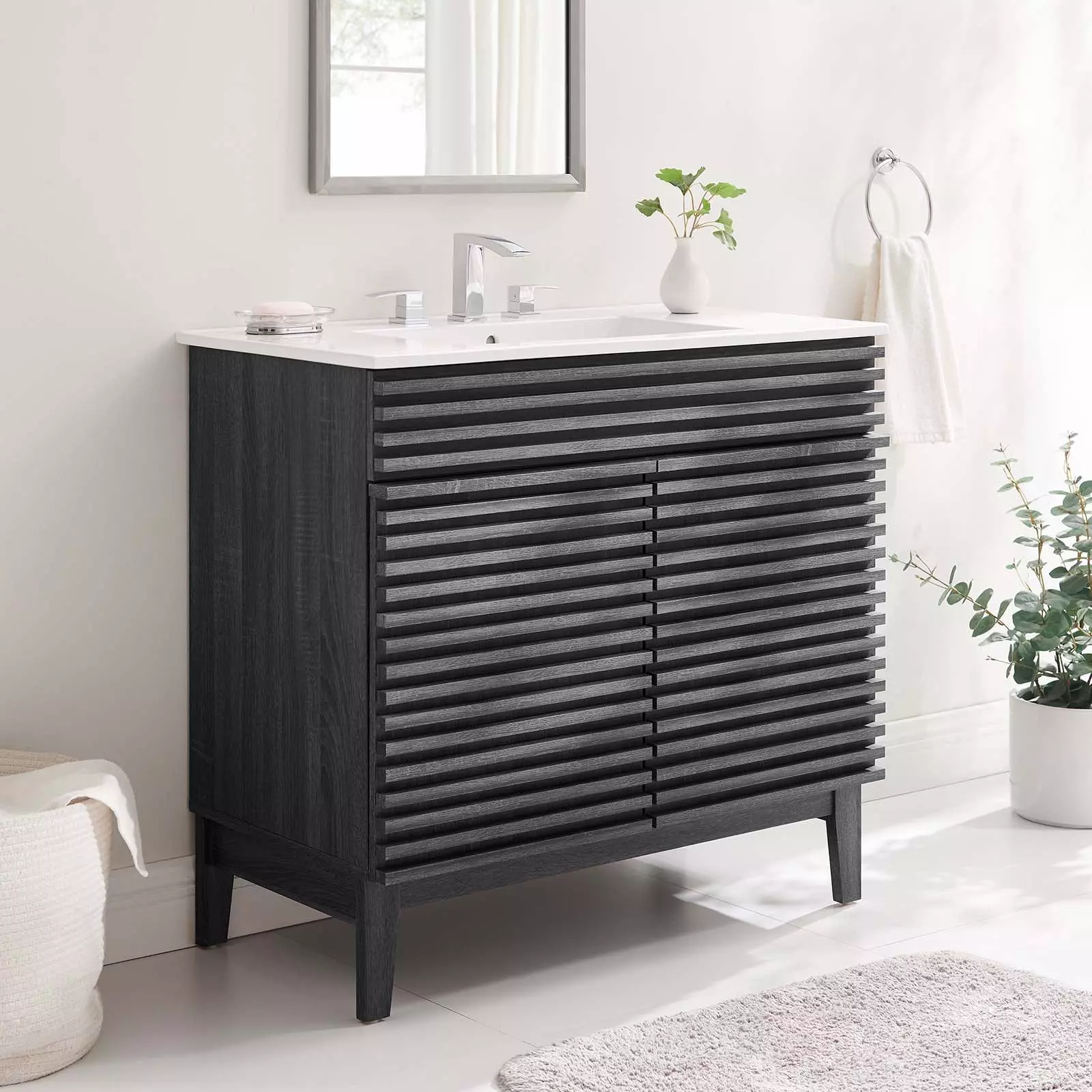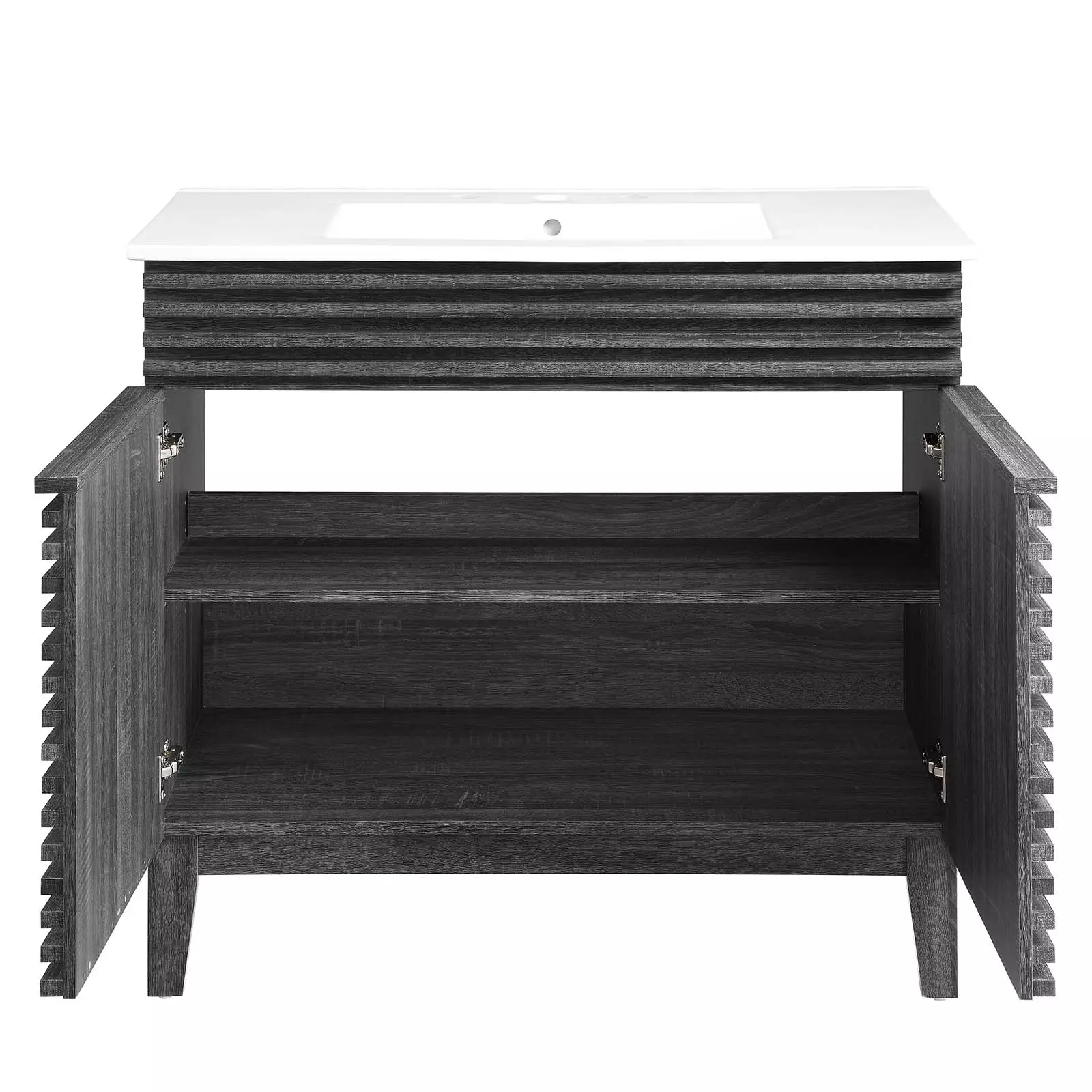Clean lines and crisp design align for an edgy style designed to meet your needs. Boasting a mid-century modern style this vanity features a solid construction with a pleasing look and practical functionality.