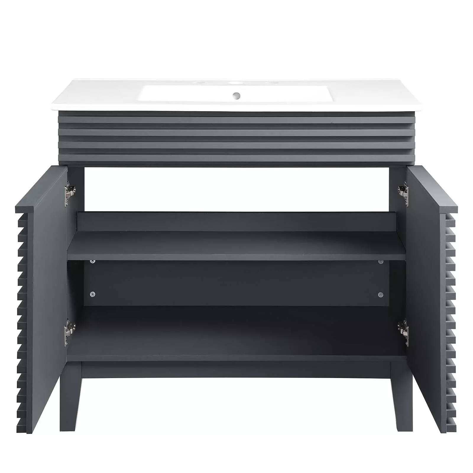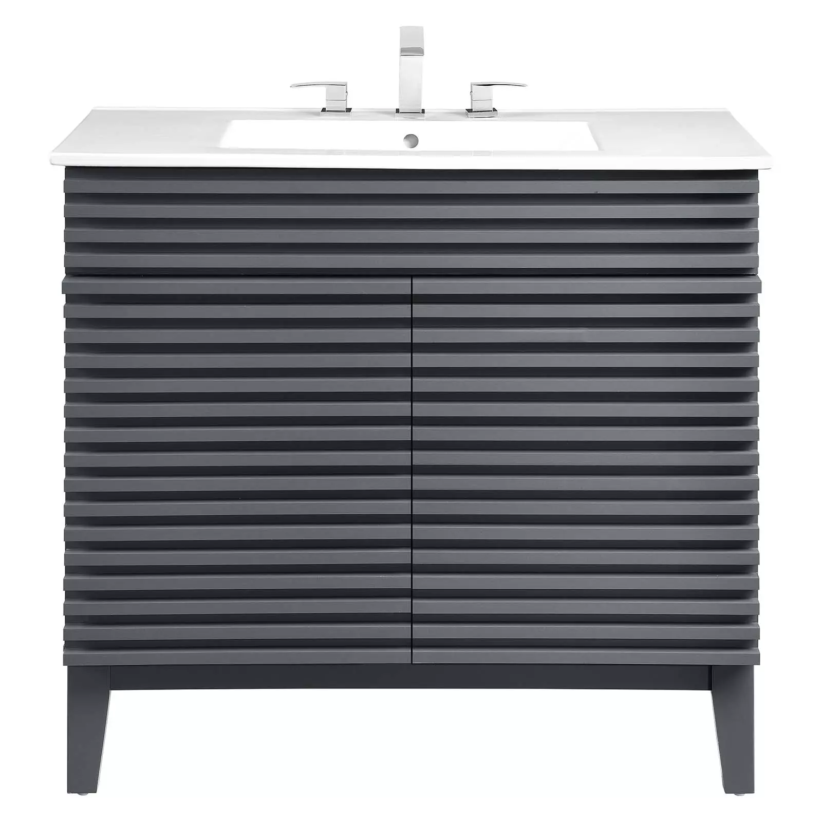 Clean lines and crisp design align for an edgy style designed to meet your needs. Boasting a mid-century modern style this vanity features a solid construction with a pleasing look and practical functionality.