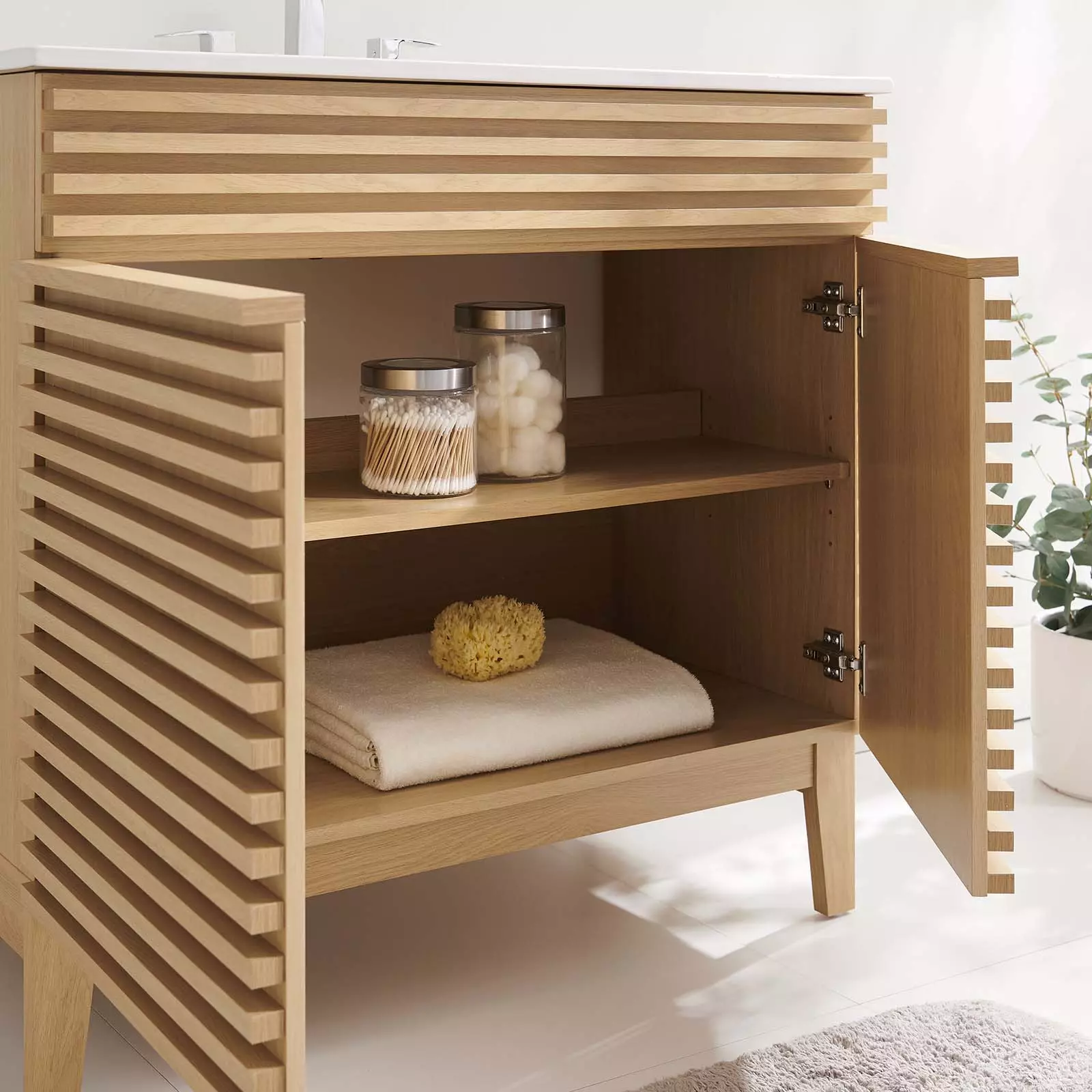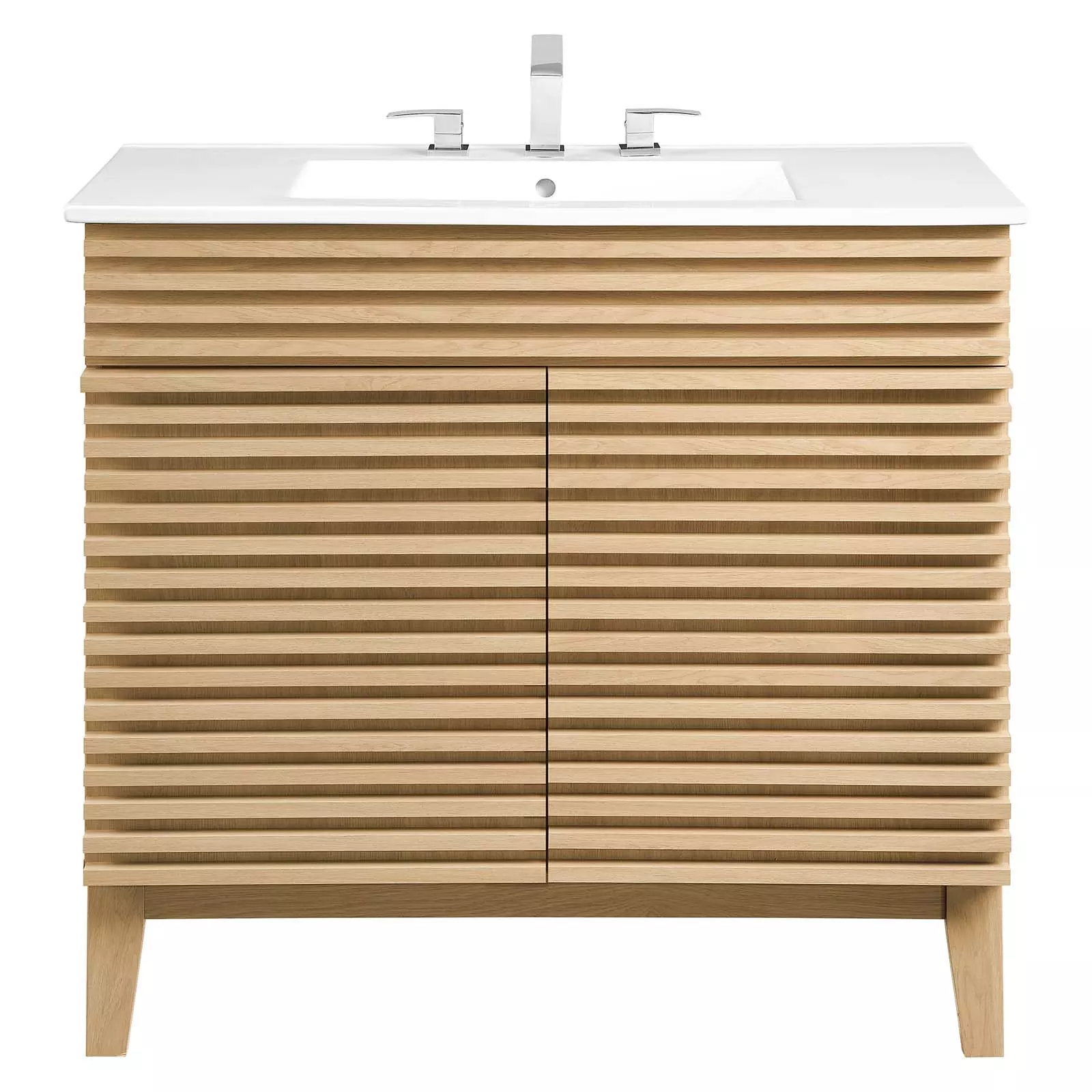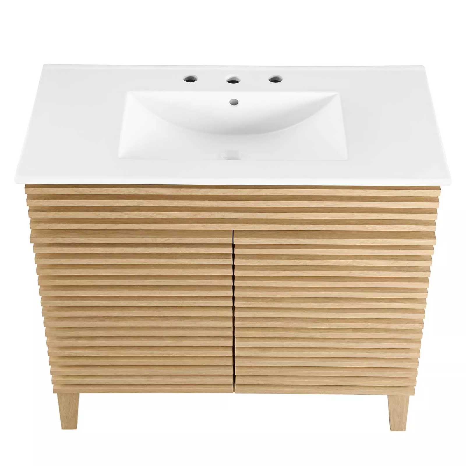Clean lines and crisp design align for an edgy style designed to meet your needs. Boasting a mid-century modern style this vanity features a solid construction with a pleasing look and practical functionality.