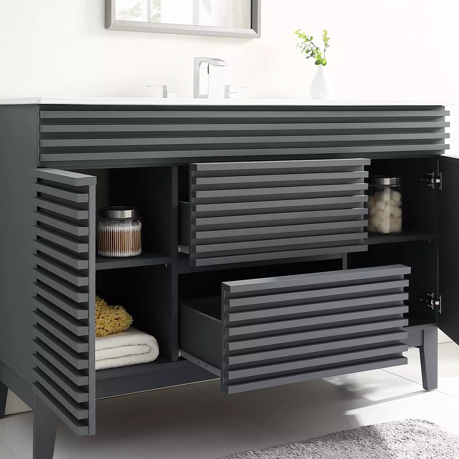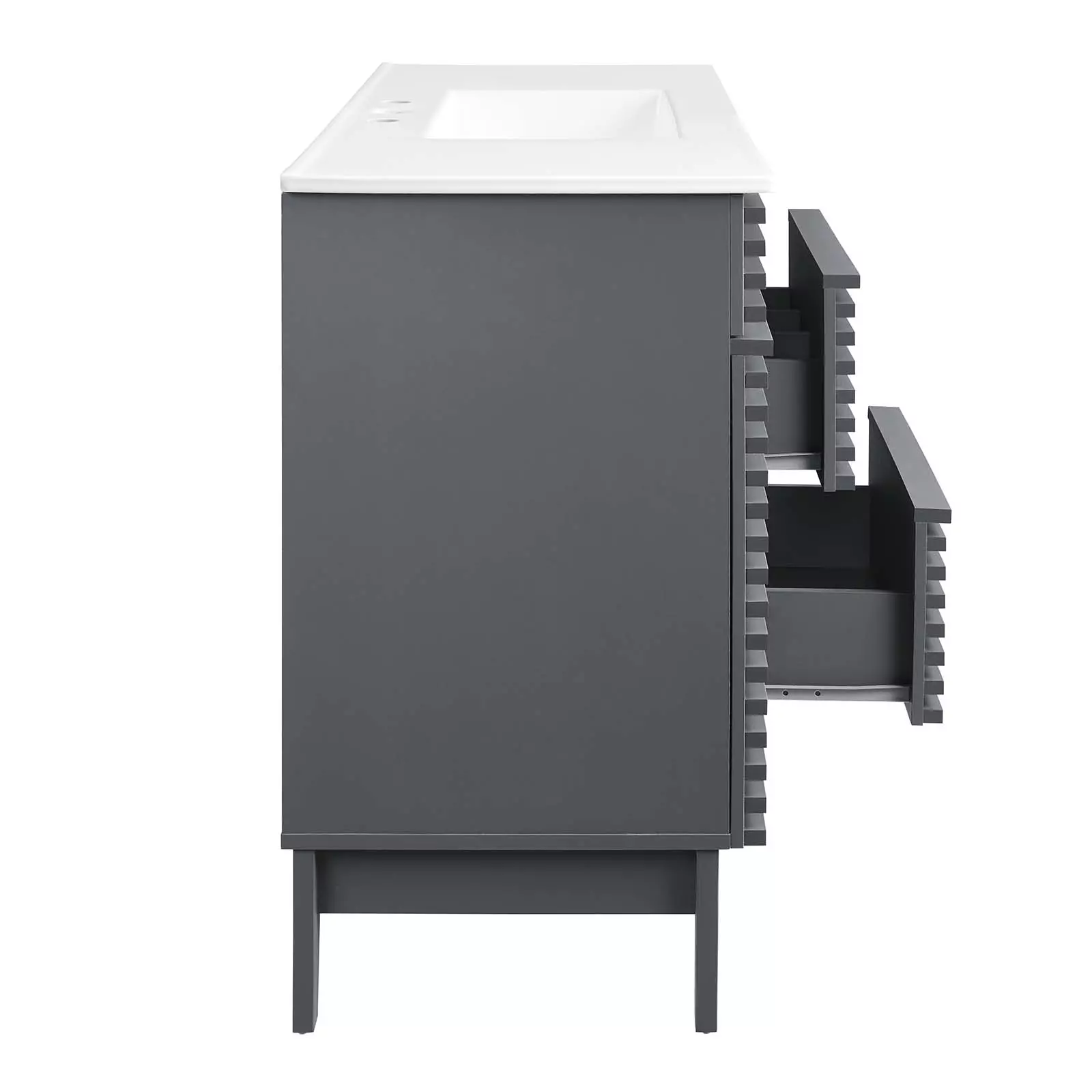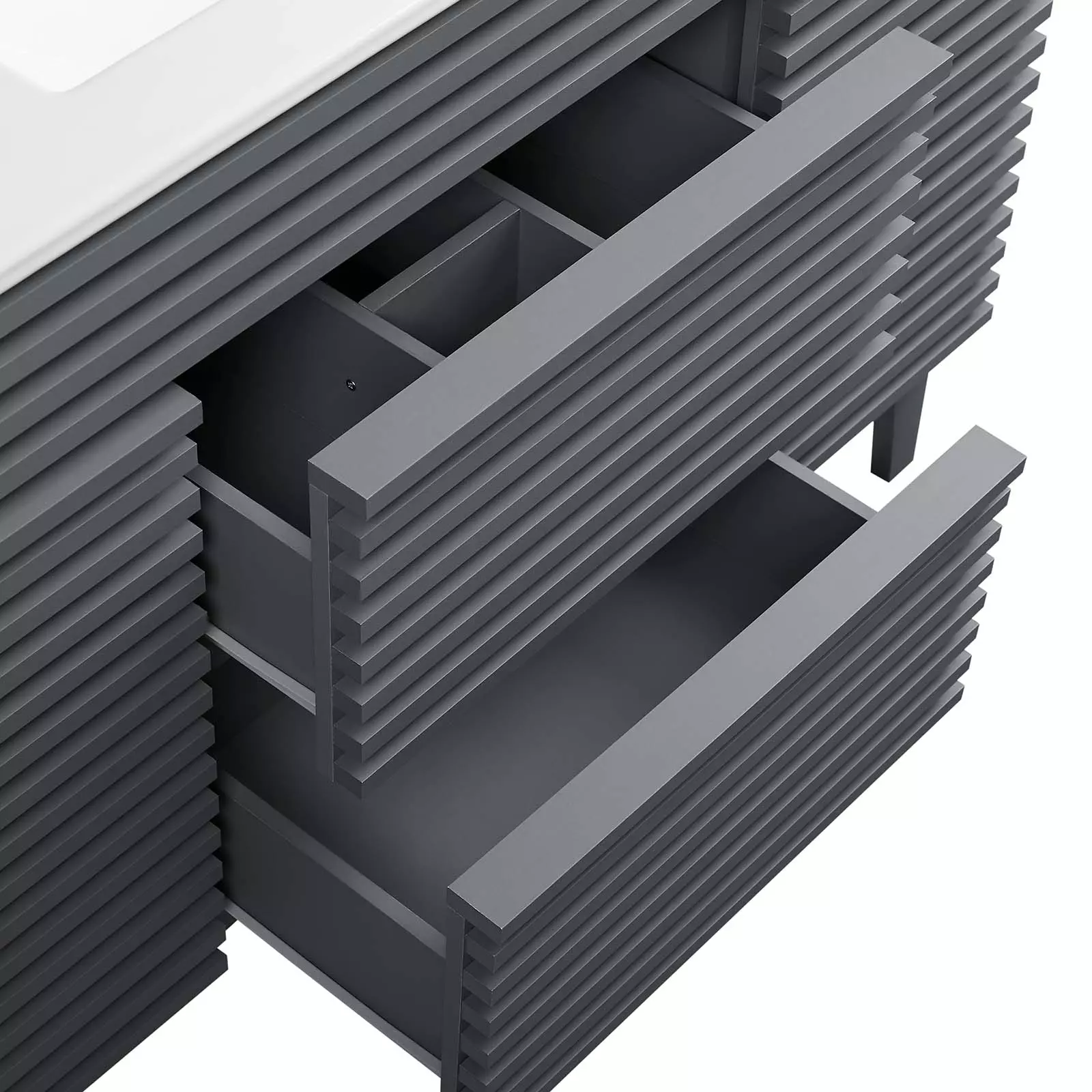 Clean lines and crisp design align for an edgy style designed to meet your needs. Boasting a mid-century modern style this vanity features a solid construction with a pleasing look and practical functionality.