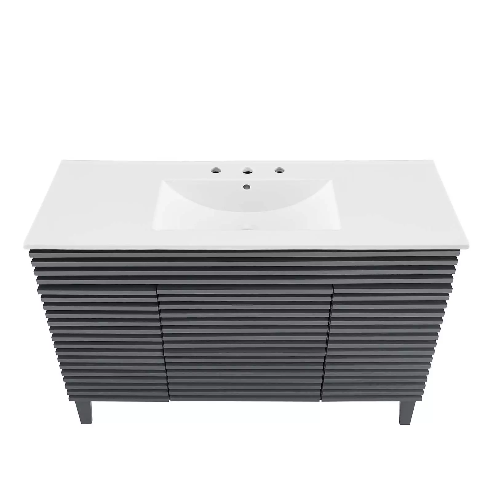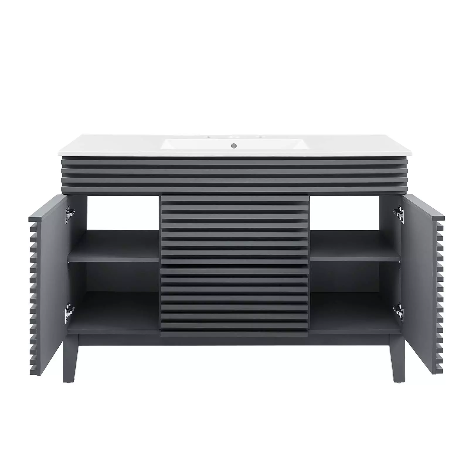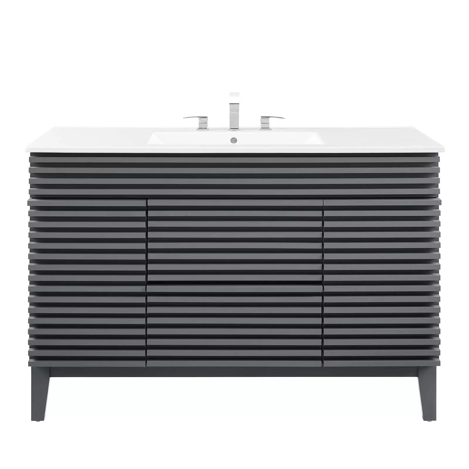 Clean lines and crisp design align for an edgy style designed to meet your needs. Boasting a mid-century modern style this vanity features a solid construction with a pleasing look and practical functionality.