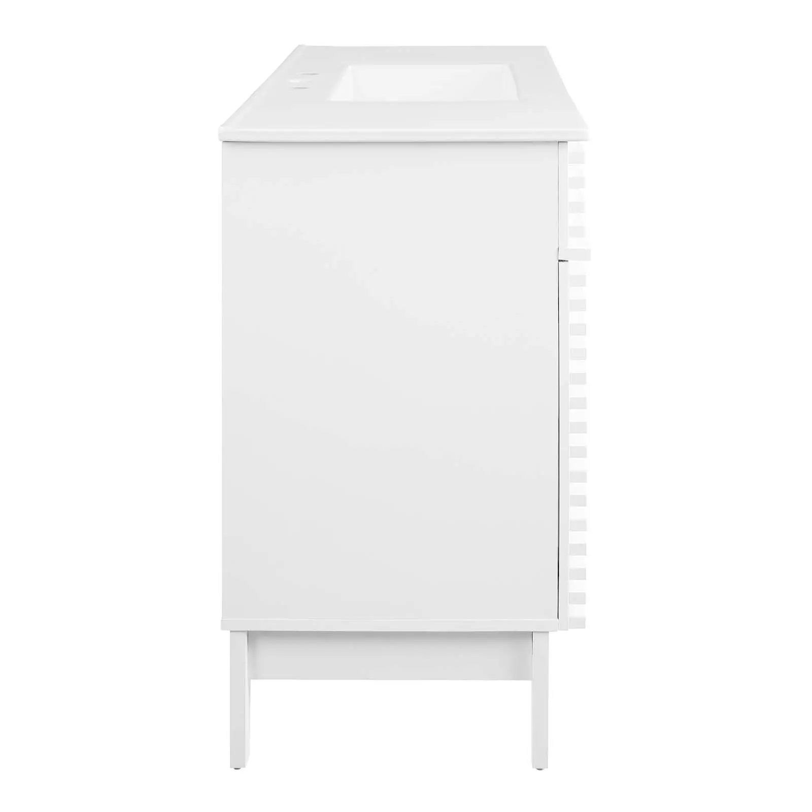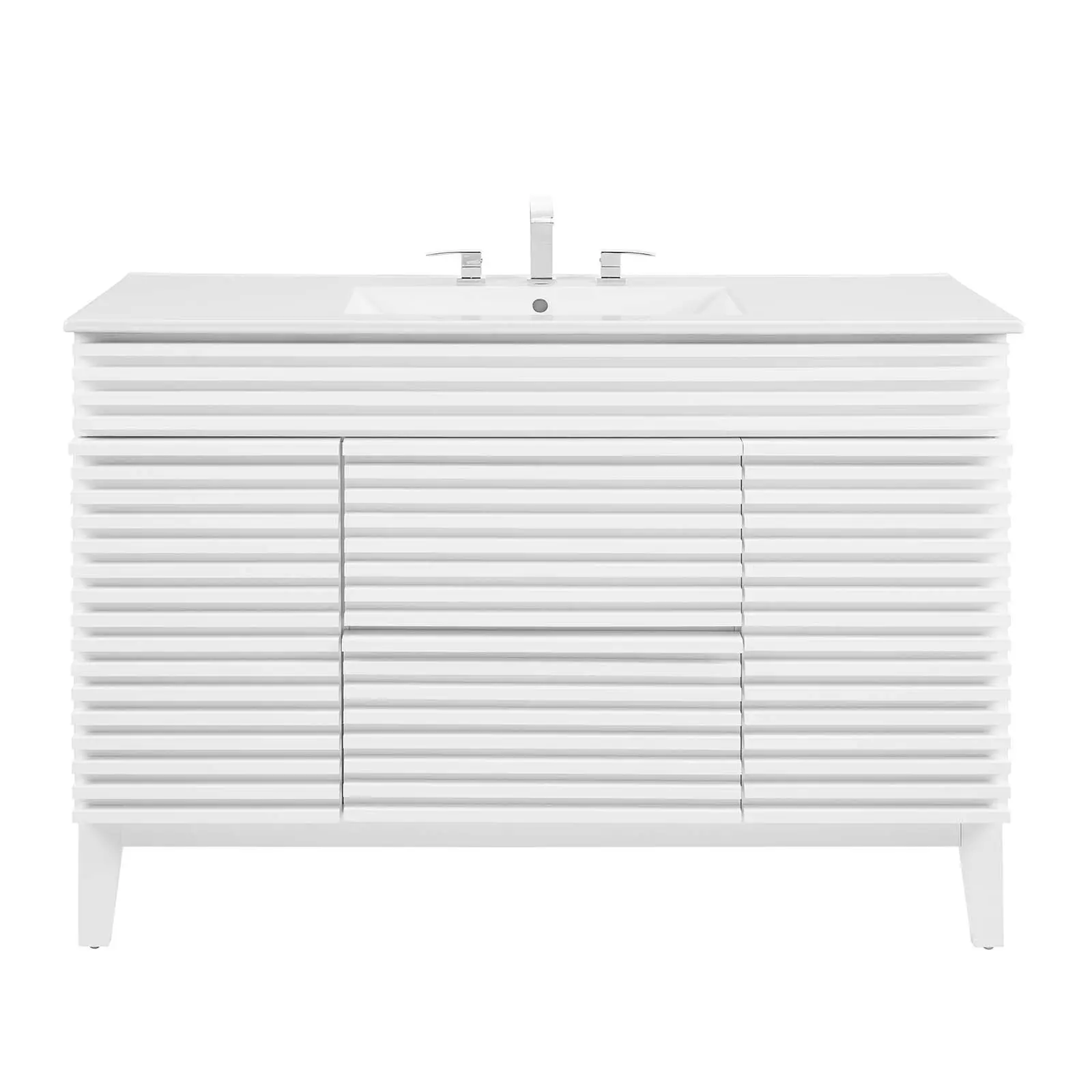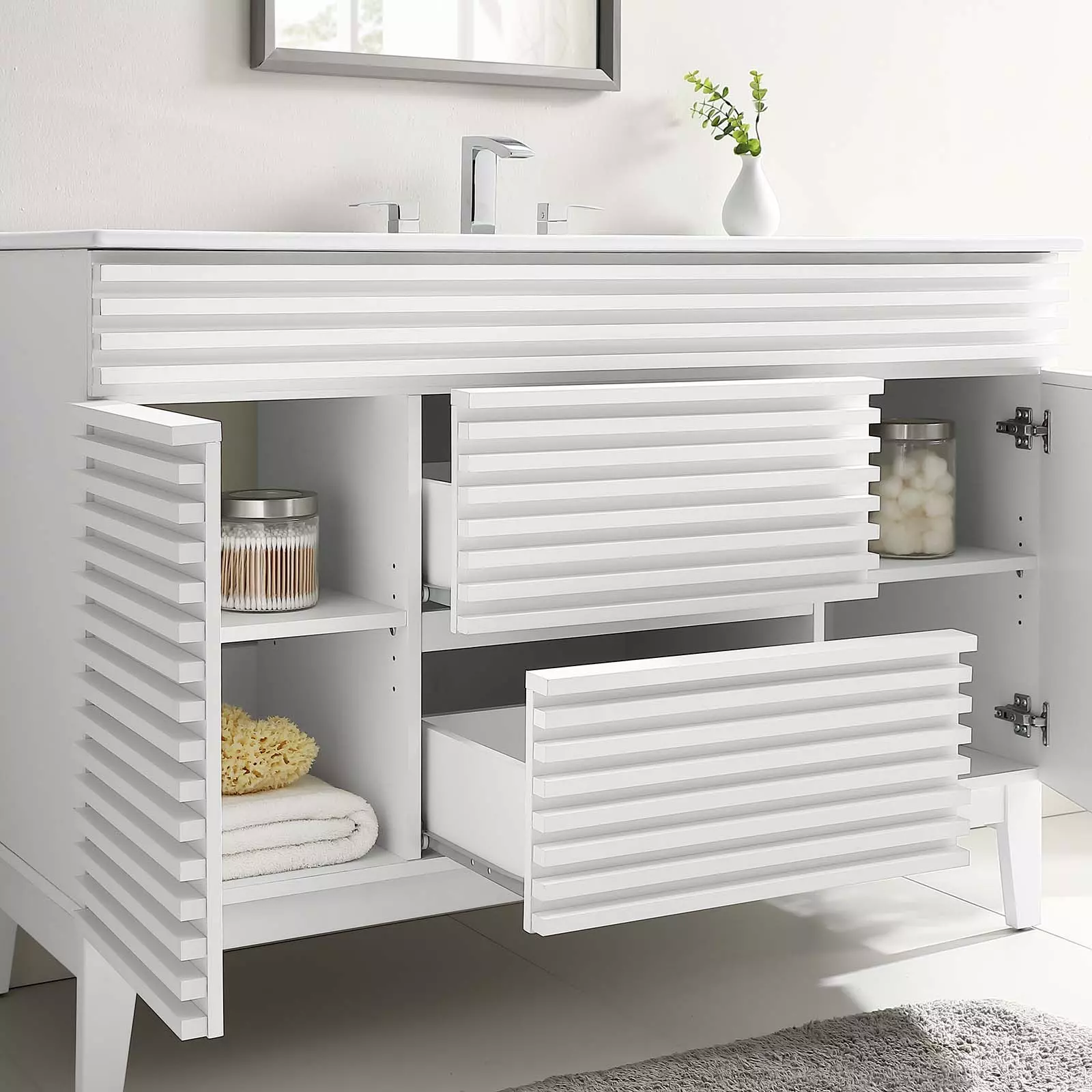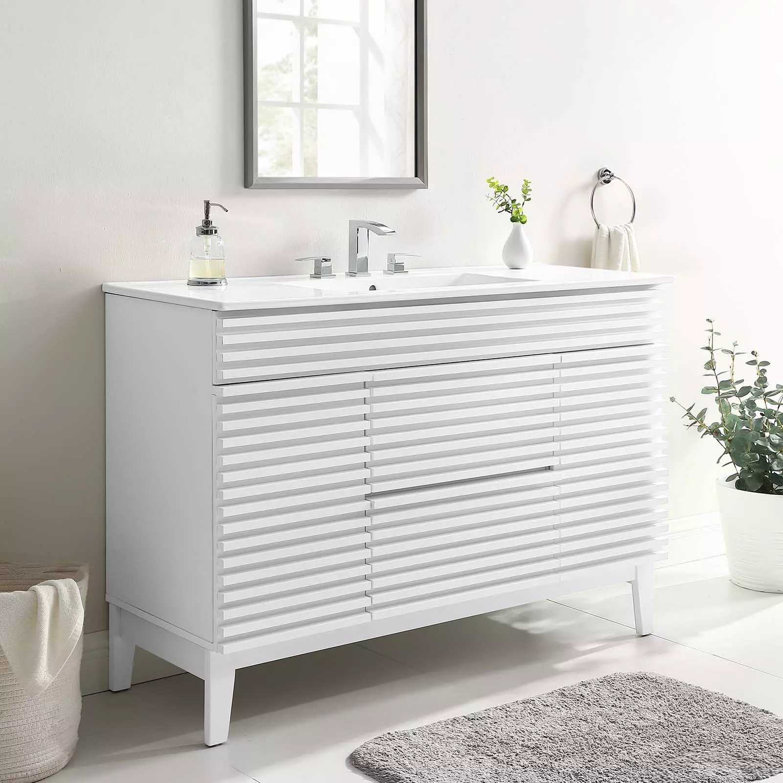 Clean lines and crisp design align for an edgy style designed to meet your needs. Boasting a mid-century modern style this vanity features a solid construction with a pleasing look and practical functionality.