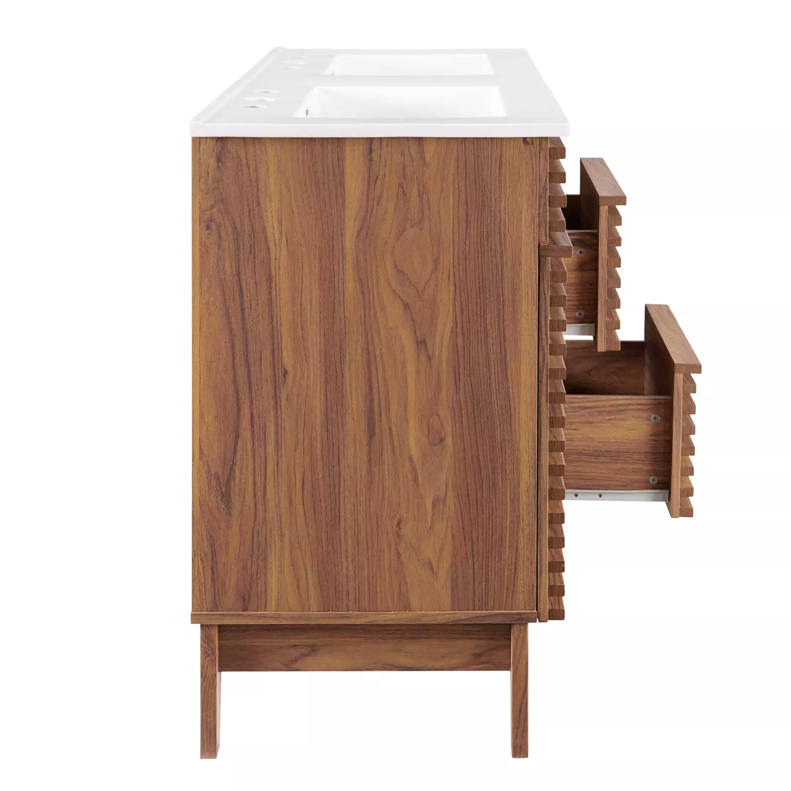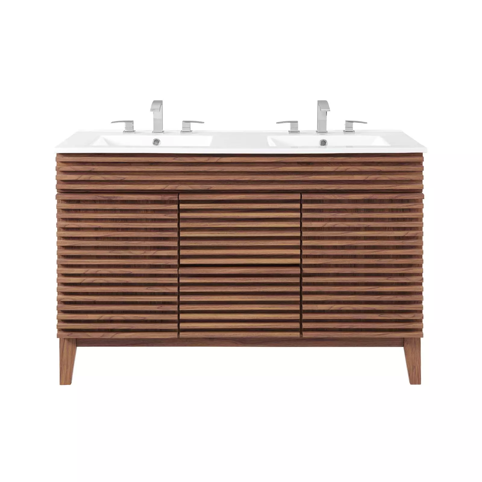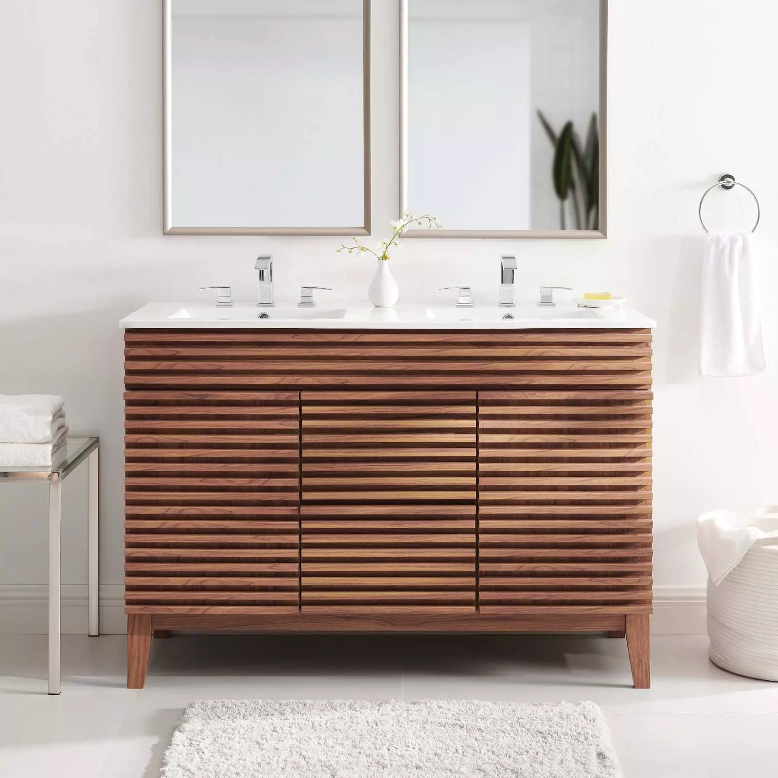 Clean lines and crisp design align for an edgy style designed to meet your needs. Boasting a mid-century modern style this vanity features a solid construction with a pleasing look and practical functionality.