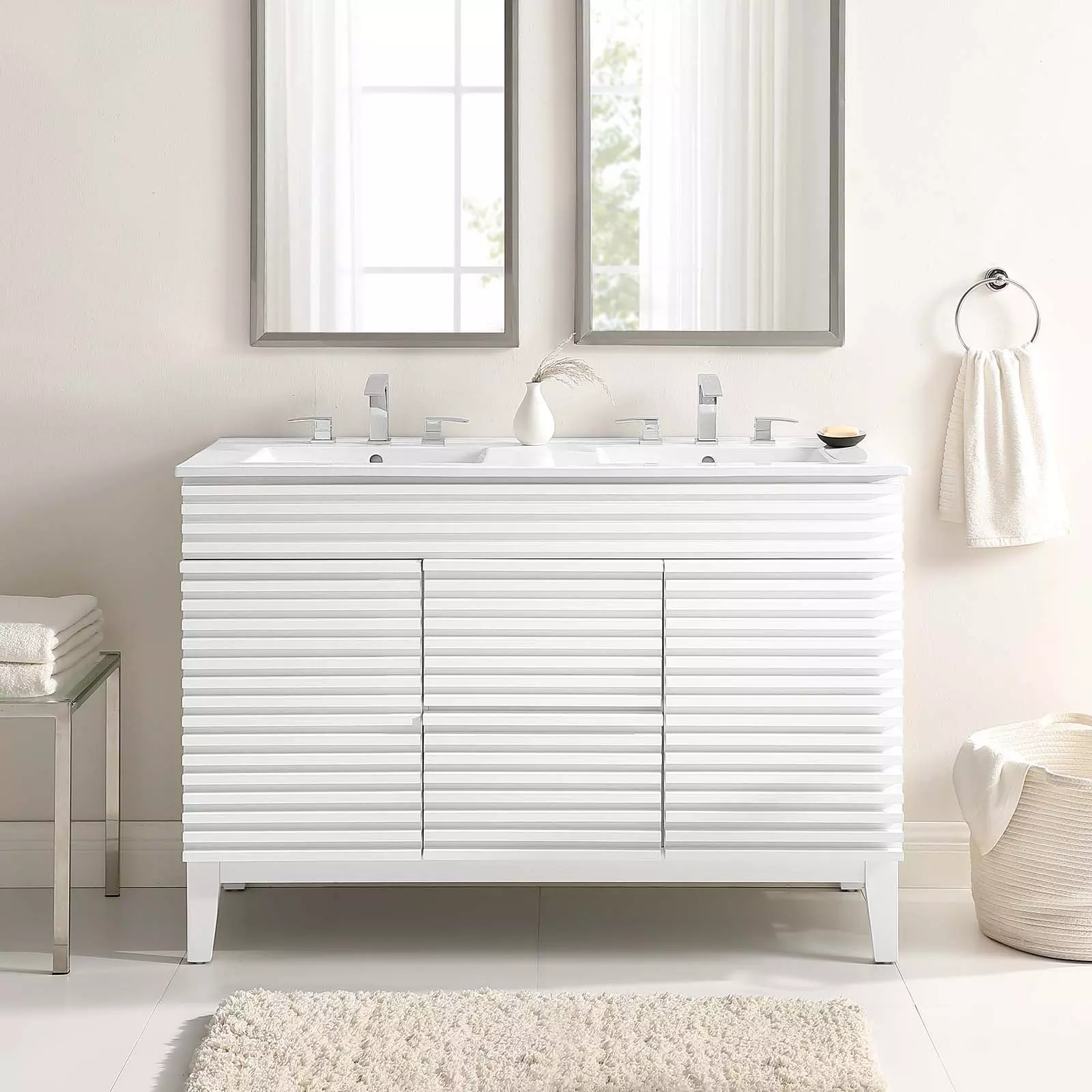 Clean lines and crisp design align for an edgy style designed to meet your needs. Boasting a mid-century modern style this vanity features a solid construction with a pleasing look and practical functionality.