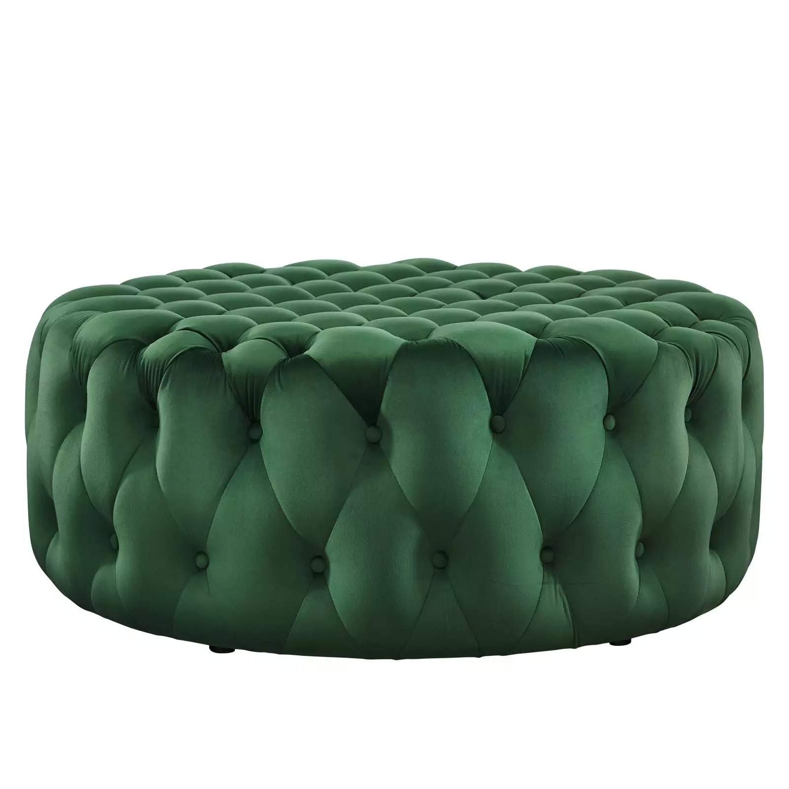 Amour Tufted Button Large Round Performance Velvet Ottoman in Emerald by Modway