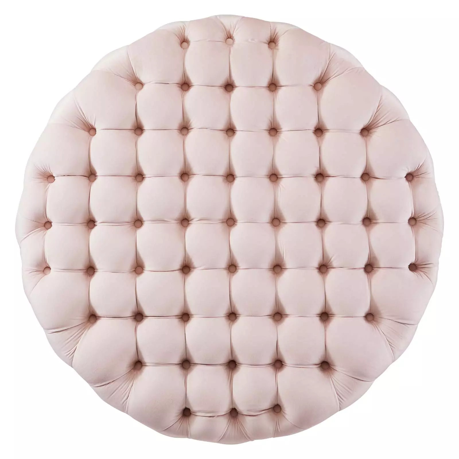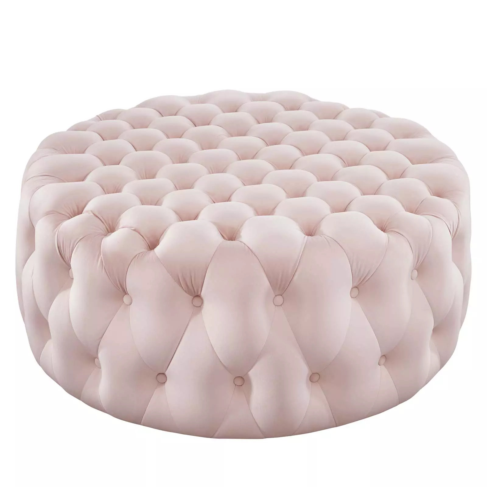 Amour Tufted Button Large Round Performance Velvet Ottoman in Pink by Modway