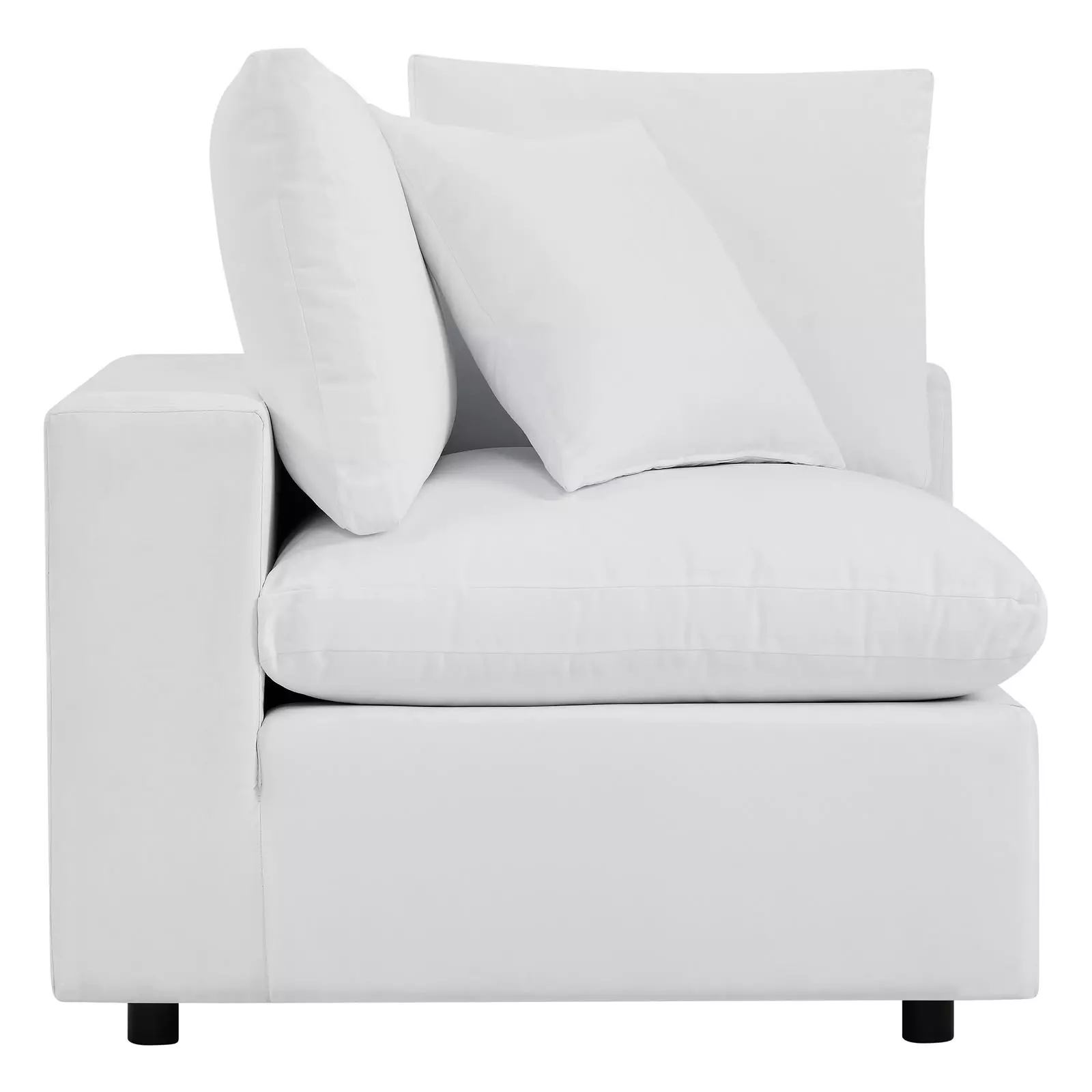 A haven for cozy relaxation right in your own backyard, Commix features plush comfort, a clean-lined design, and a spacious profile that makes an attractive statement on the porch, patio, or by the poolside. Made for sprawling out in the sun or curling up with a good book, this outdoor patio sectional sofa features generously padded cushions covered in water-repellent, UV-resistant Sunbrella® fabric covers making them ideal for your outdoor space. This outdoor sectional sofa features an all-weather construction with a powder-coated aluminum frame and non-marking foot caps to protect flooring surfaces. Beckoning guests to sit and stay a while, the Commix Outdoor Patio Collection is perfect for al fresco entertaining or lounging amidst warm weather.