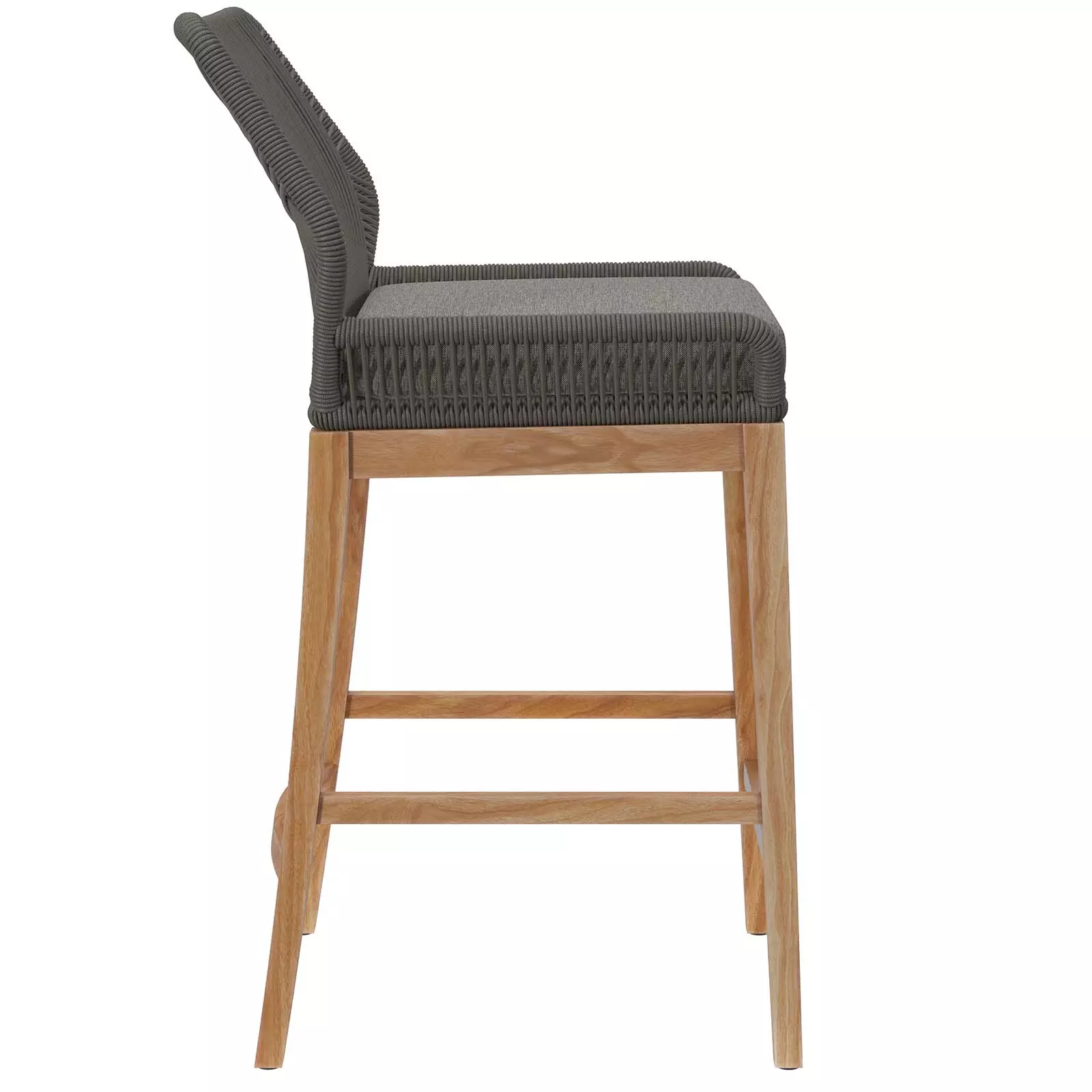 Featuring a premium solid teak wood base with stretchers and non-marking foot pins to protect flooring, this patio bar stool boasts a removable cushion with dense foam padding and ties to ensure a secure seat.
