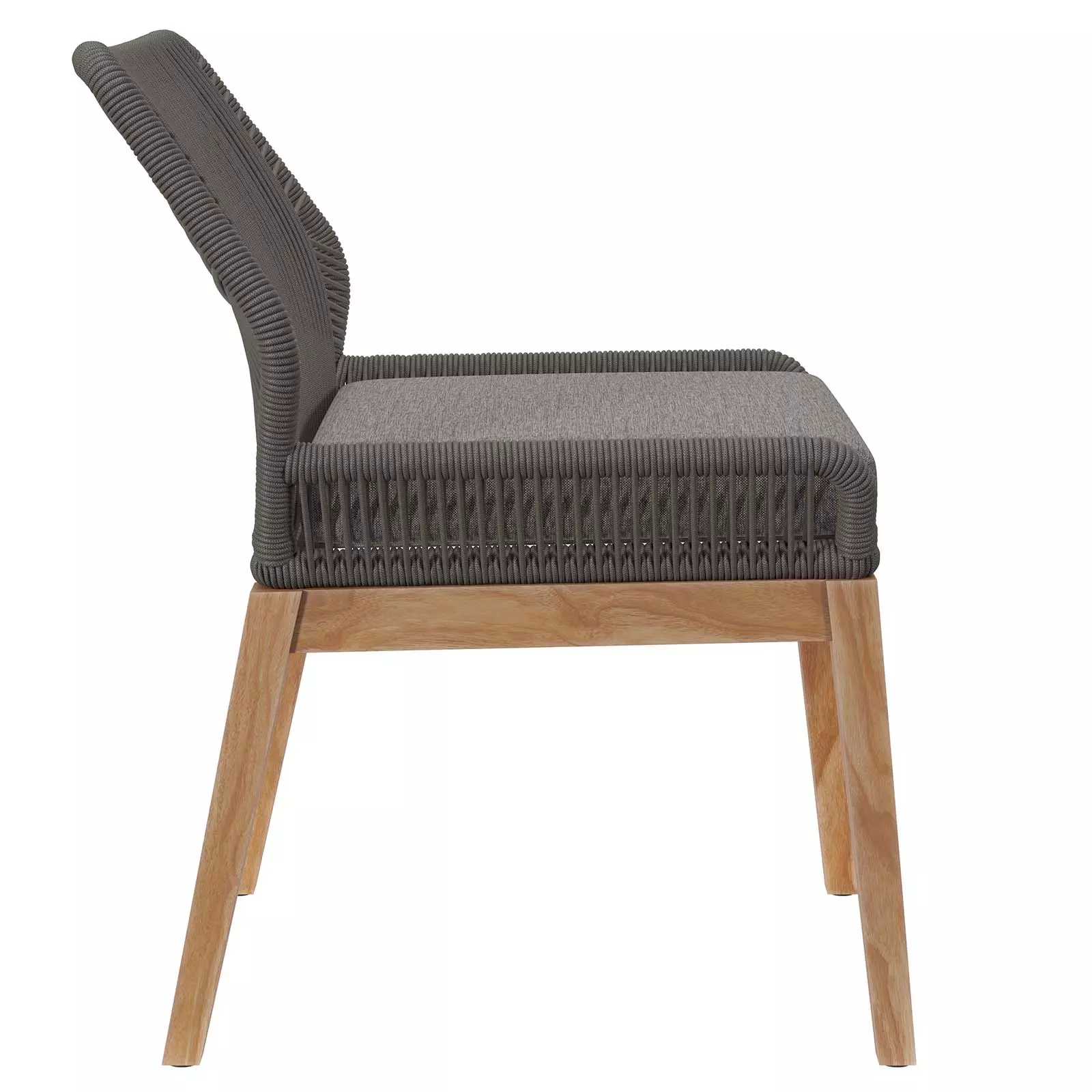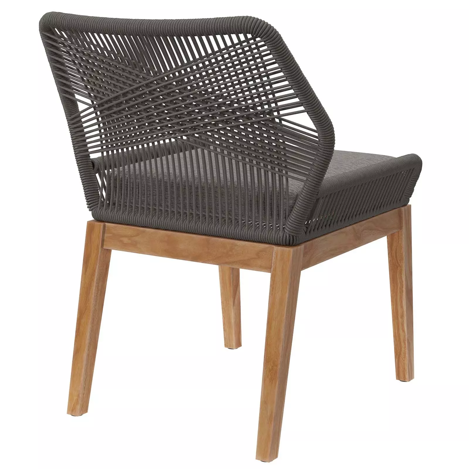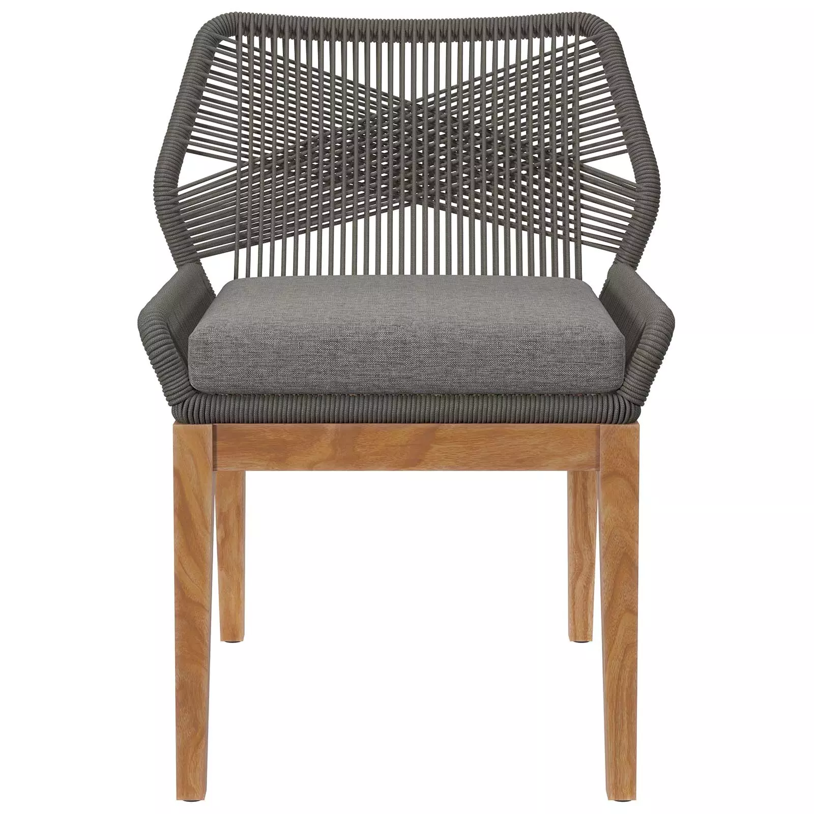 Wellspring brings contemporary modern aesthetics to a backyard, porch, patio, or poolside with it's calming colors, organic wood grain, woven rope detail on the aluminum seat frame, and a crisscross pattern along the backrest.