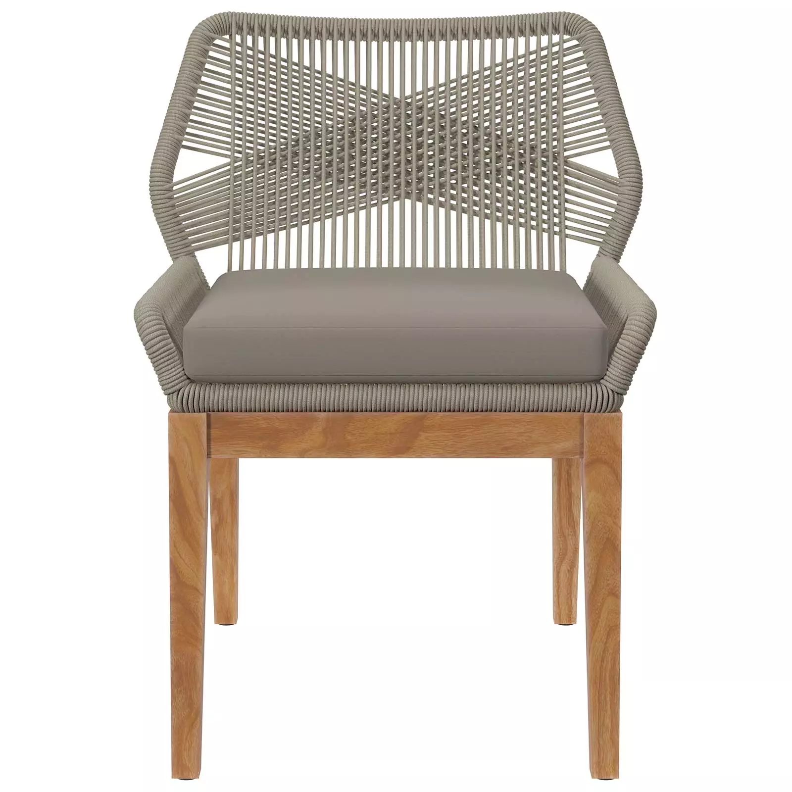 Wellspring brings contemporary modern aesthetics to a backyard, porch, patio, or poolside with it's calming colors, organic wood grain, woven rope detail on the aluminum seat frame, and a crisscross pattern along the backrest.