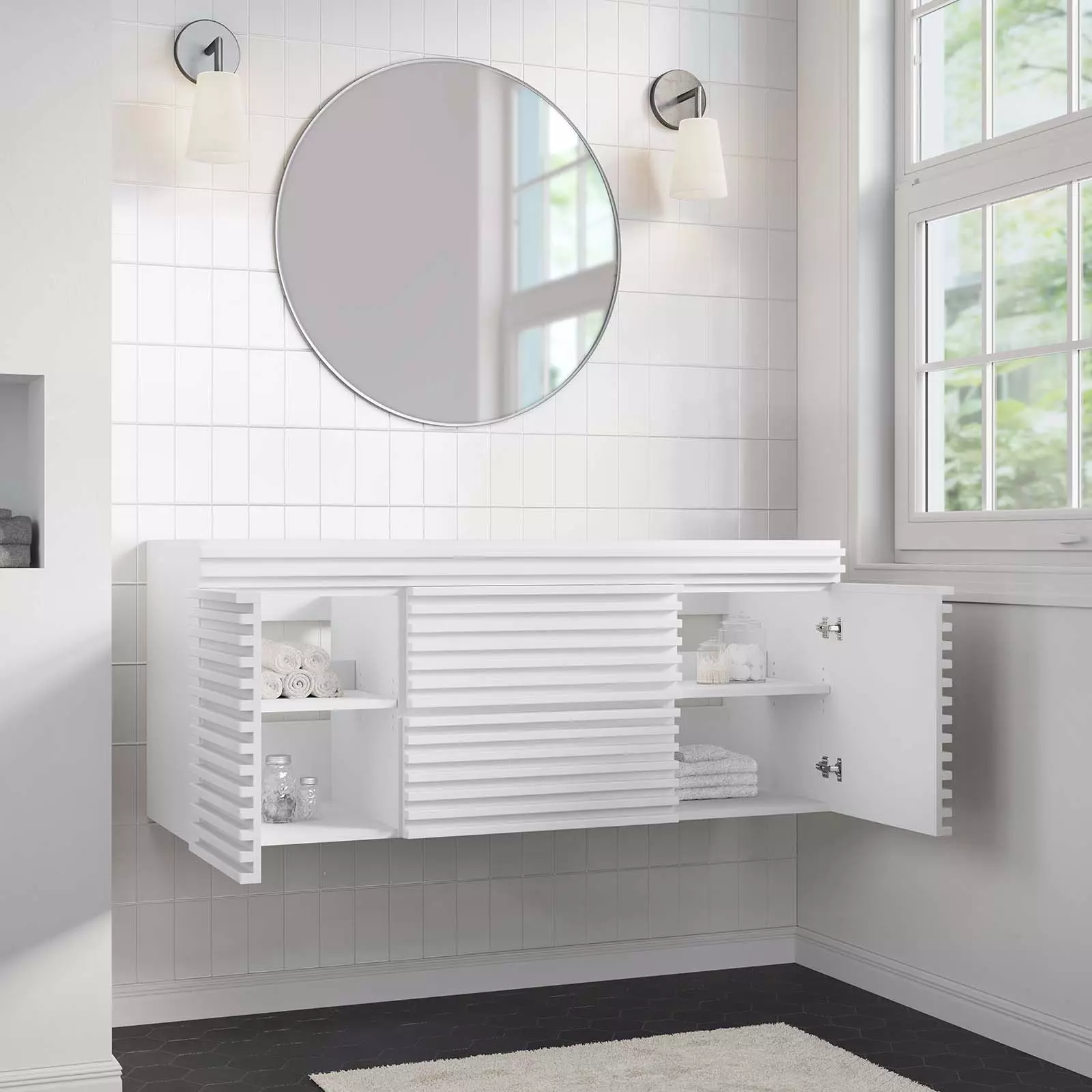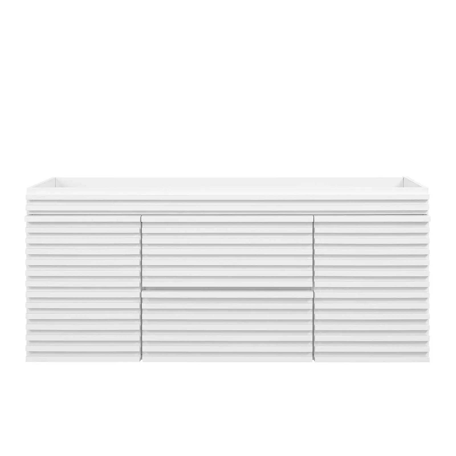 Tap into mid-century aesthetics with the Render Vanity Cabinet. The Render 48" Bathroom Vanity features a durable MDF and particleboard frame with a smooth laminate, ample storage space in two full-extension drawers, and space-saving wall-mount design with a drywall friendly mounting cleat. Clean lines and crisp design align for an edgy style designed to meet your needs. Boasting a mid-century modern style this vanity features a solid construction with a pleasing look and practical functionality.