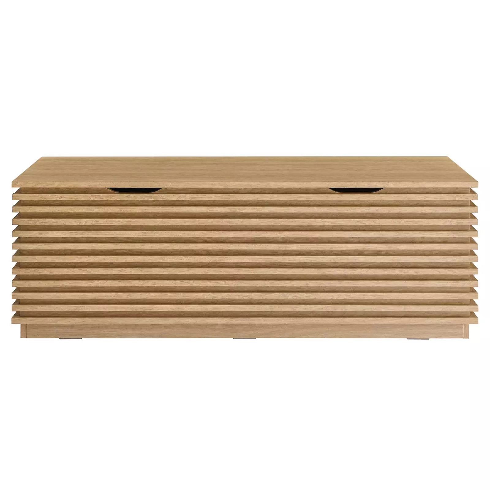 This installment of the Render collection features a durable particleboard frame with a smooth wood grain laminate and retro slatted detail. With a hinged top, this versatile accent bench features a solid construction with a pleasing look and practical functionality. Perfect for the living room, bedroom, entryway, or mudroom, this 47" bench offers ample storage space for linens, clothes, blankets, or whatever else suits your needs.