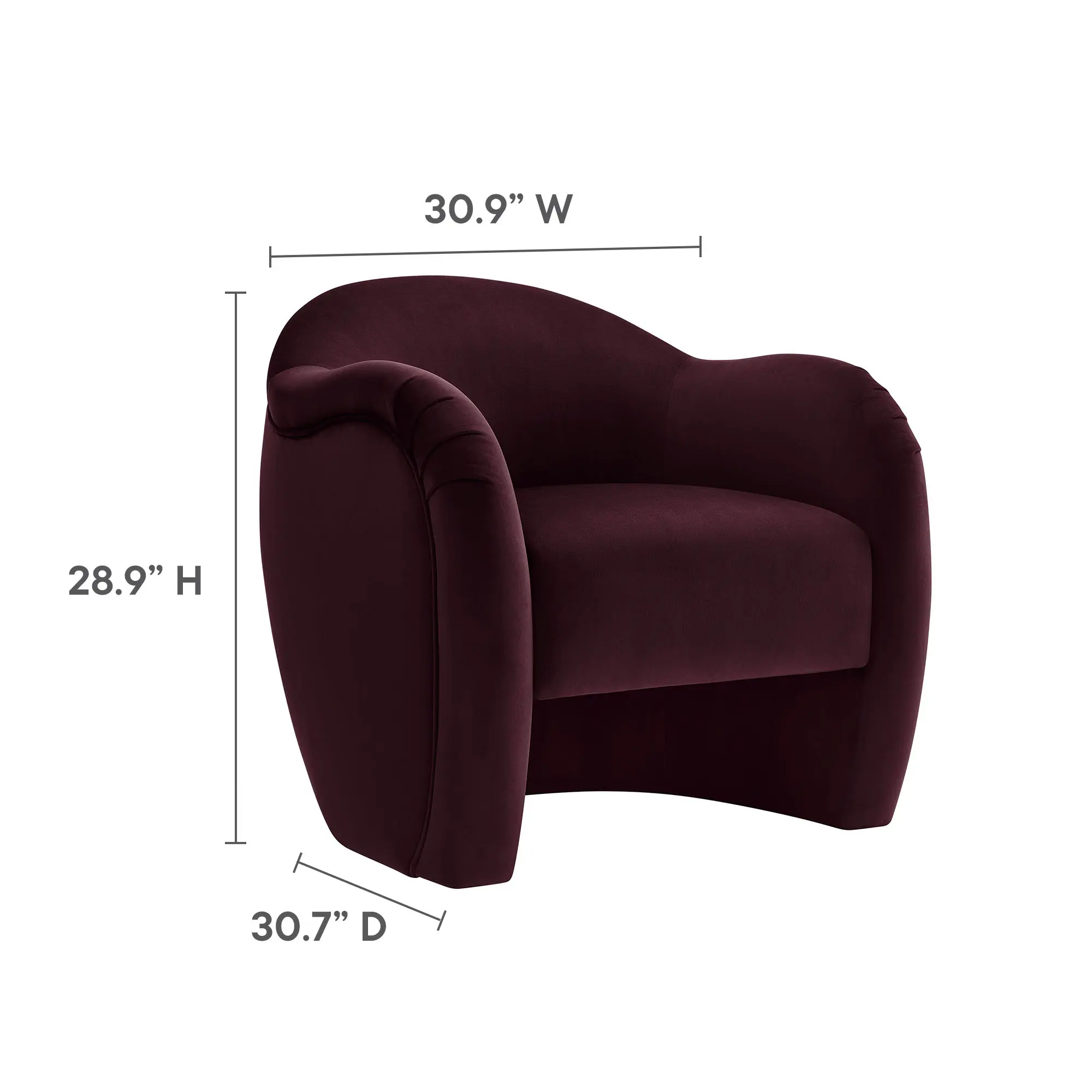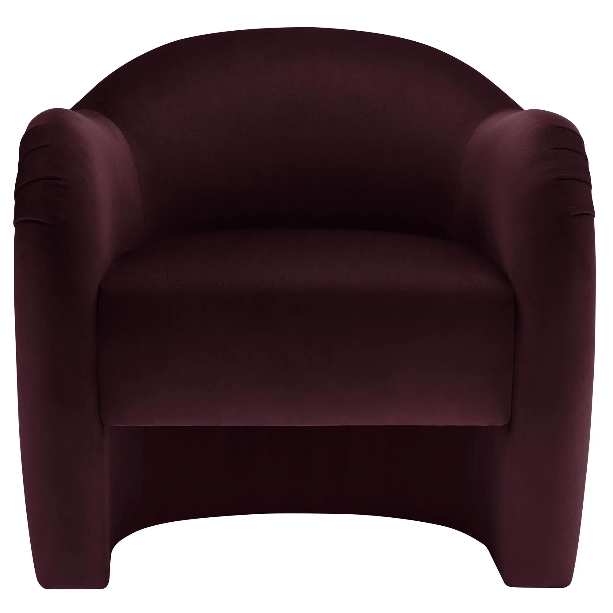 Experience unparalleled elegance and comfort with the Compose Performance Velvet Armchair. This stunning barrel chair, upholstered in stain-resistant performance velvet fabric, is the epitome of modern luxury. Its dense foam padding offers supreme comfort, while the curved back and armrests provide stylish support. The unique curved shape of the Compose Accent Armchair, highlighted by French piping stitching and pleated folds, makes this lounge chair a sophisticated addition to any room. Designed with modern living in mind, this reading chair includes non-marking floor glides to protect your flooring and arrives fully assembled for immediate enjoyment. Perfect as a Velvet Modern Accent Chair in the bedroom or a cozy corner chair for your reading nook, the Compose Rounded Armchair seamlessly blends style and functionality. Weight Capacity: 500 lbs.