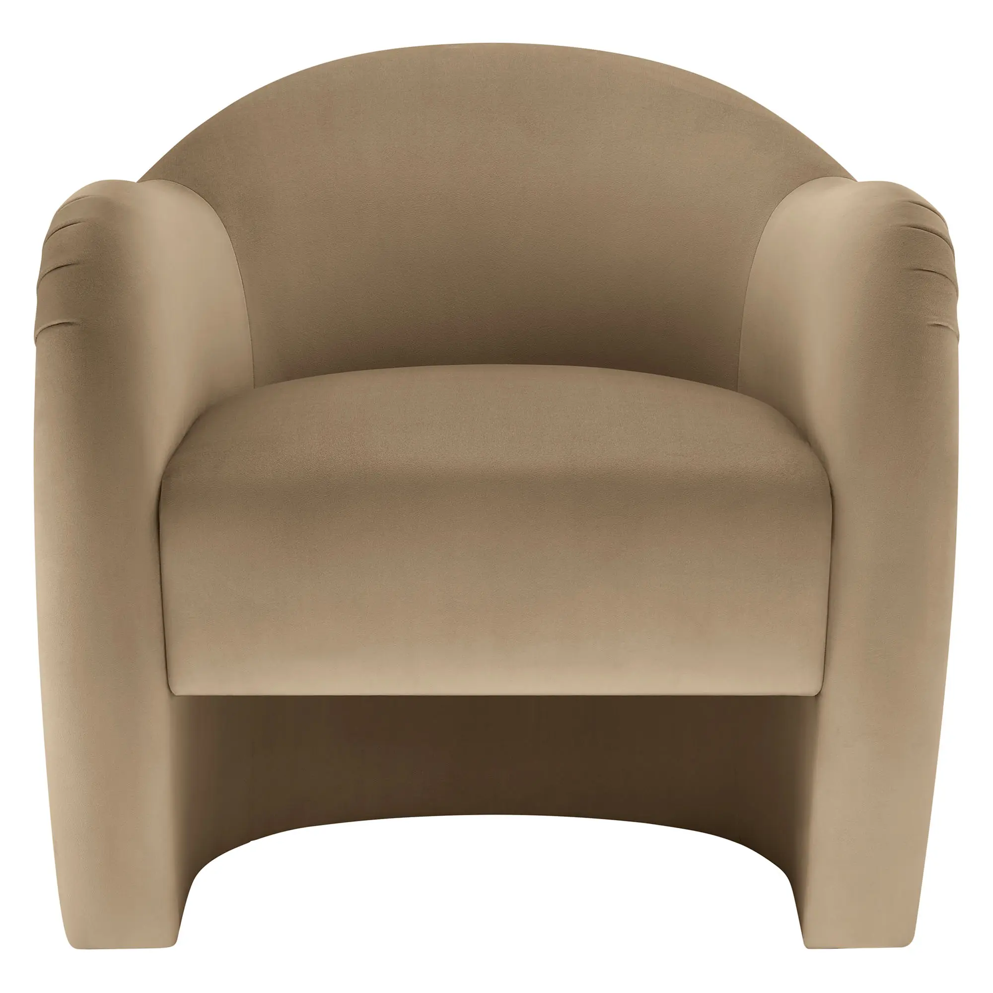 Experience unparalleled elegance and comfort with the Compose Performance Velvet Armchair. This stunning barrel chair, upholstered in stain-resistant performance velvet fabric, is the epitome of modern luxury. Its dense foam padding offers supreme comfort, while the curved back and armrests provide stylish support. The unique curved shape of the Compose Accent Armchair, highlighted by French piping stitching and pleated folds, makes this lounge chair a sophisticated addition to any room. Designed with modern living in mind, this reading chair includes non-marking floor glides to protect your flooring and arrives fully assembled for immediate enjoyment. Perfect as a Velvet Modern Accent Chair in the bedroom or a cozy corner chair for your reading nook, the Compose Rounded Armchair seamlessly blends style and functionality. Weight Capacity: 500 lbs.