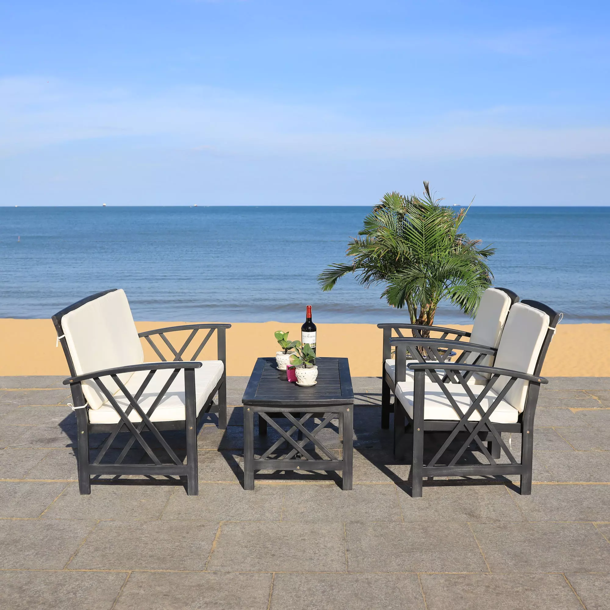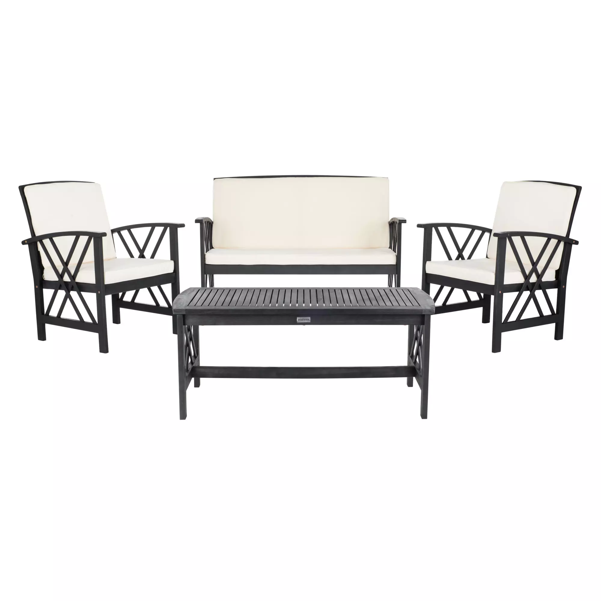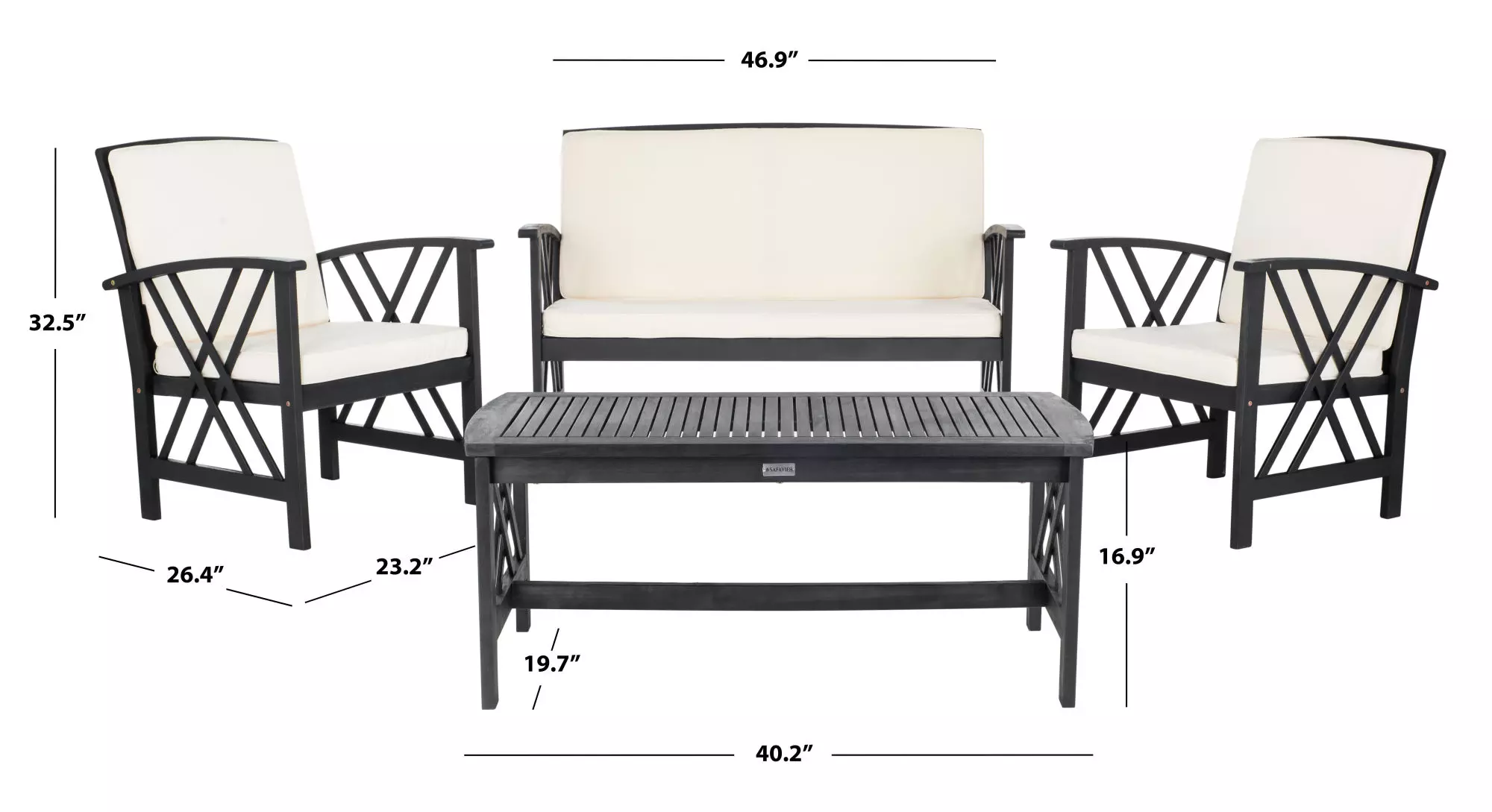 With slatted table top and seating for quick drainage, the Fontana outdoor set is good-looking and easy care.Seat Dimensions: