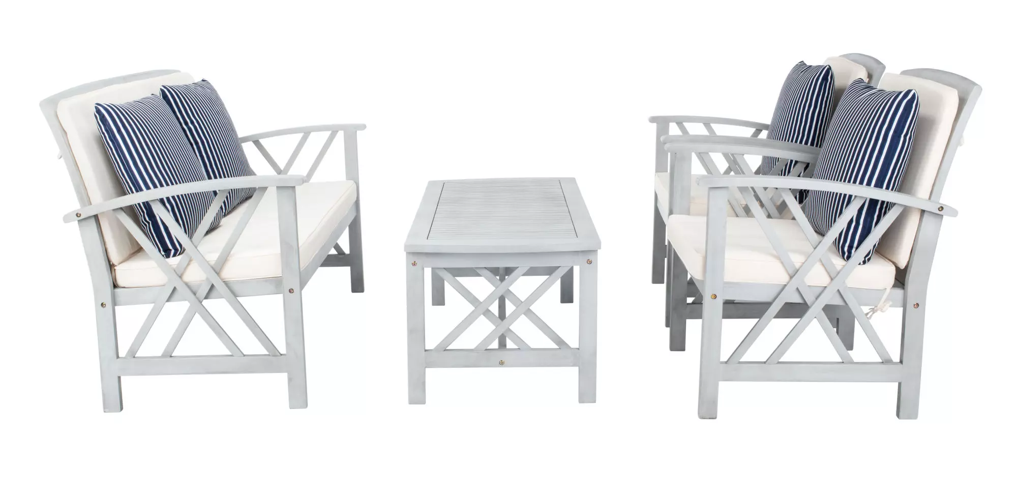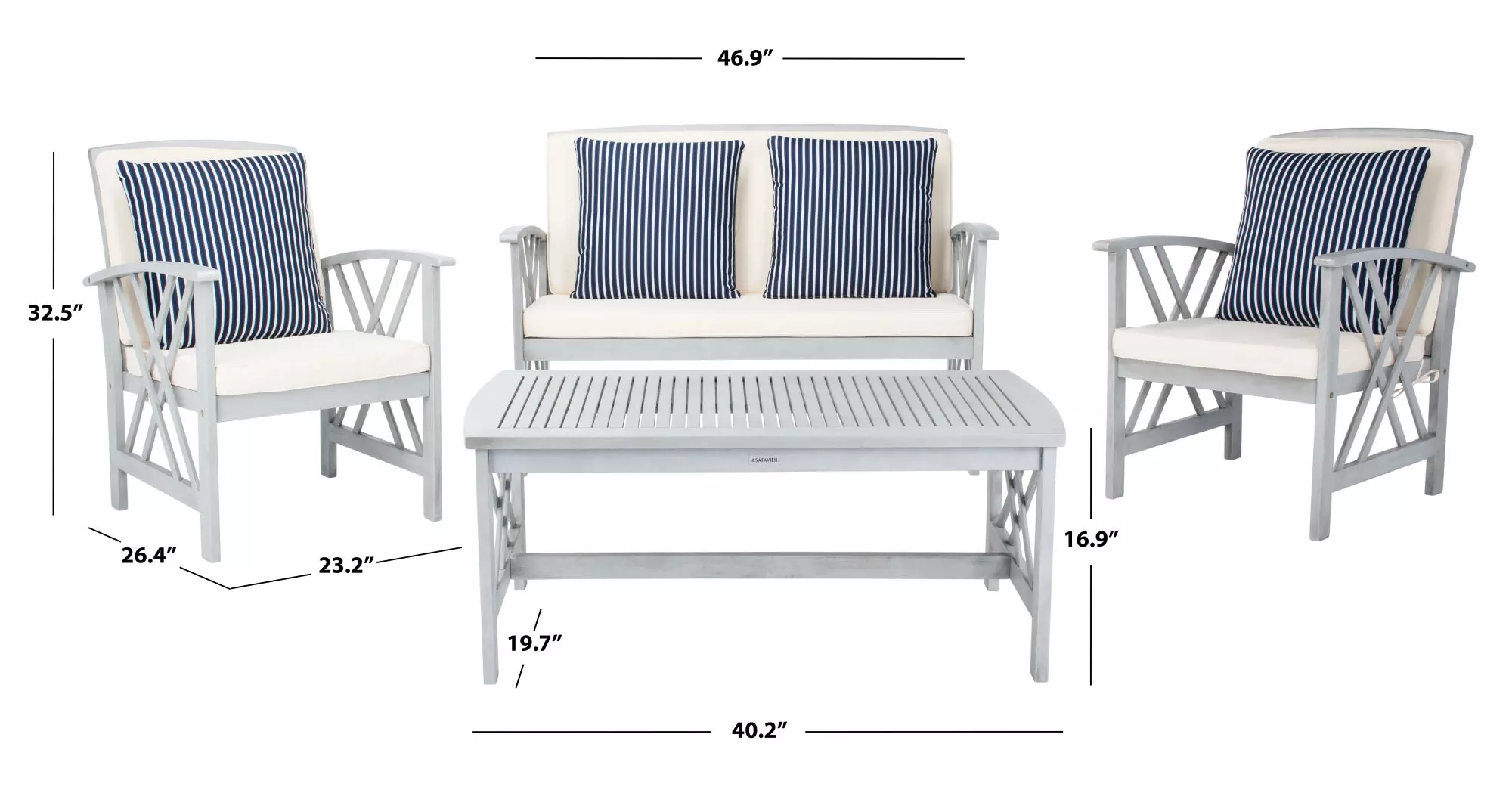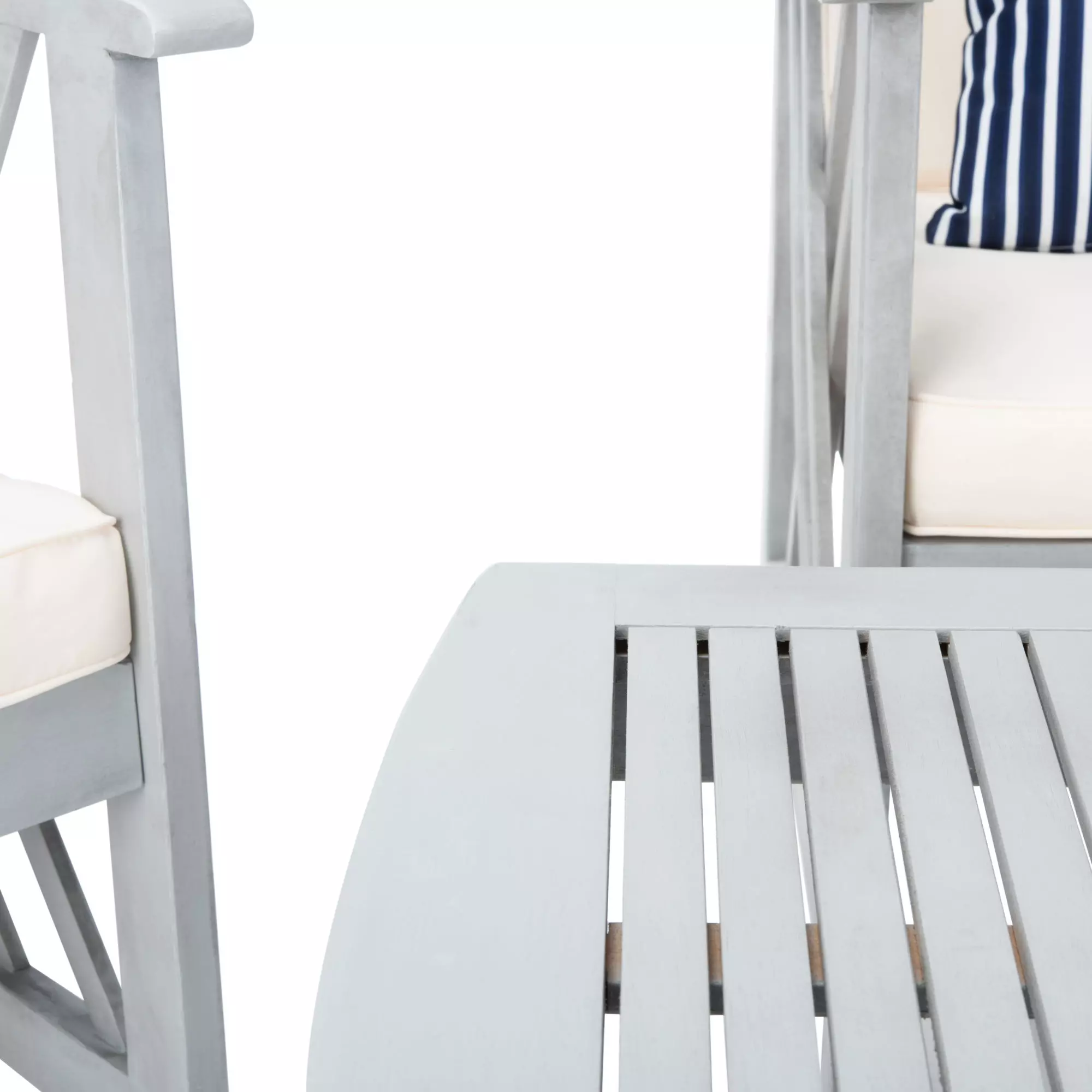 With slatted table top and seating for quick drainage, the Fontana outdoor set is good-looking and easy care.Seat Dimensions: