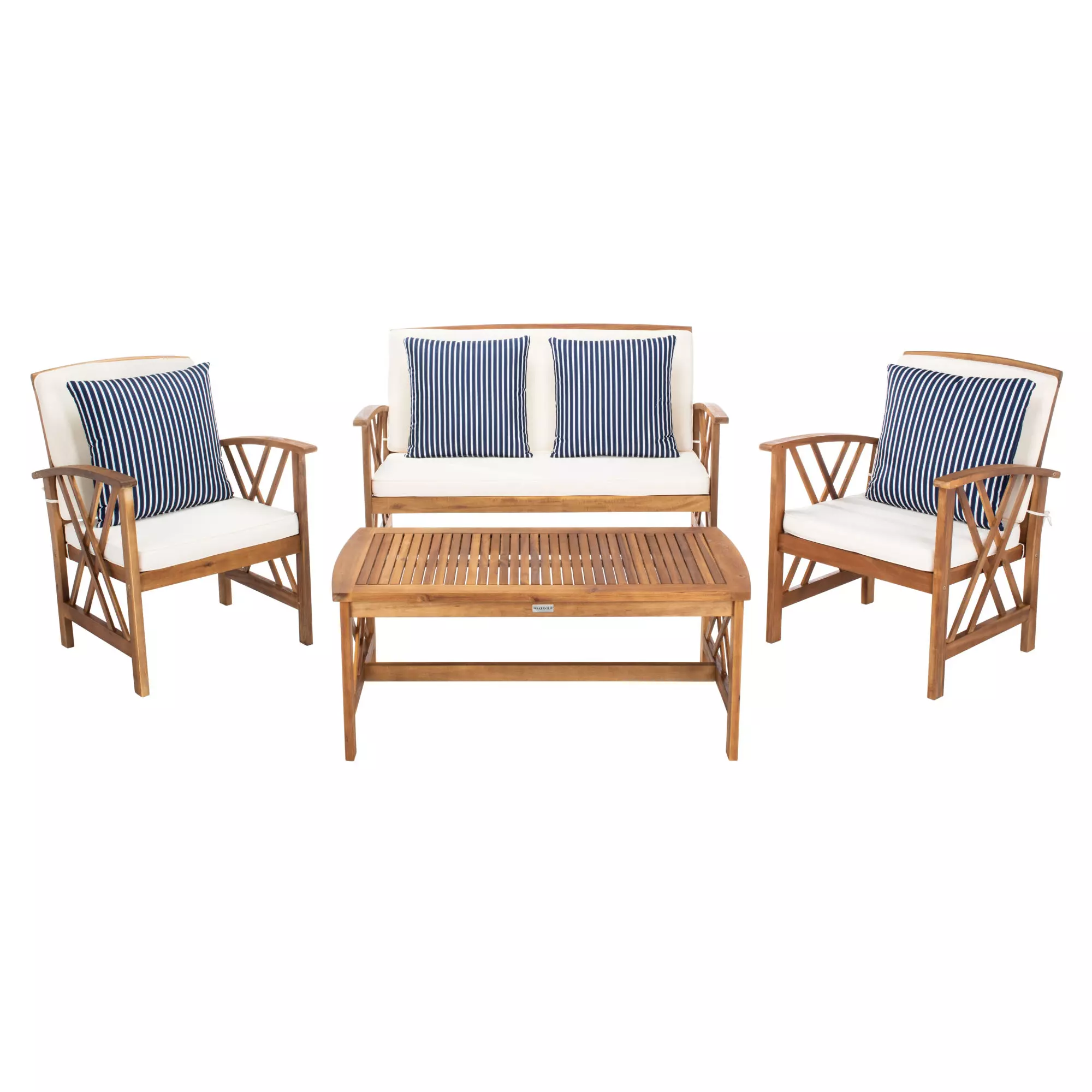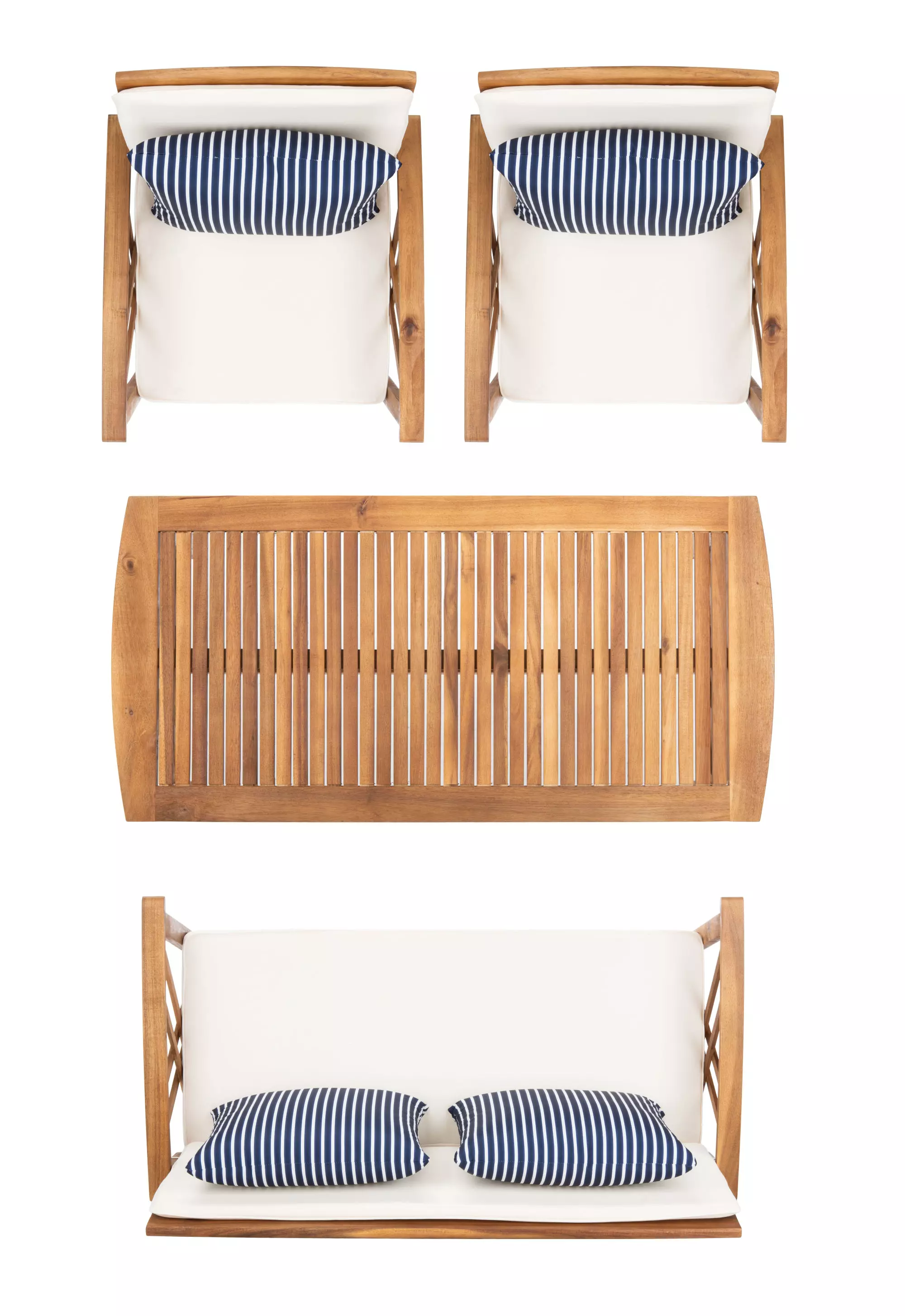 With slatted table top and seating for quick drainage, the Fontana outdoor set is good-looking and easy care.Seat Dimensions: