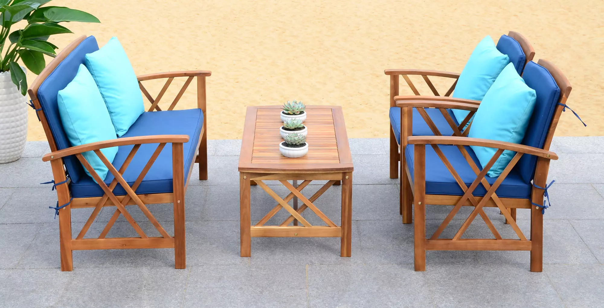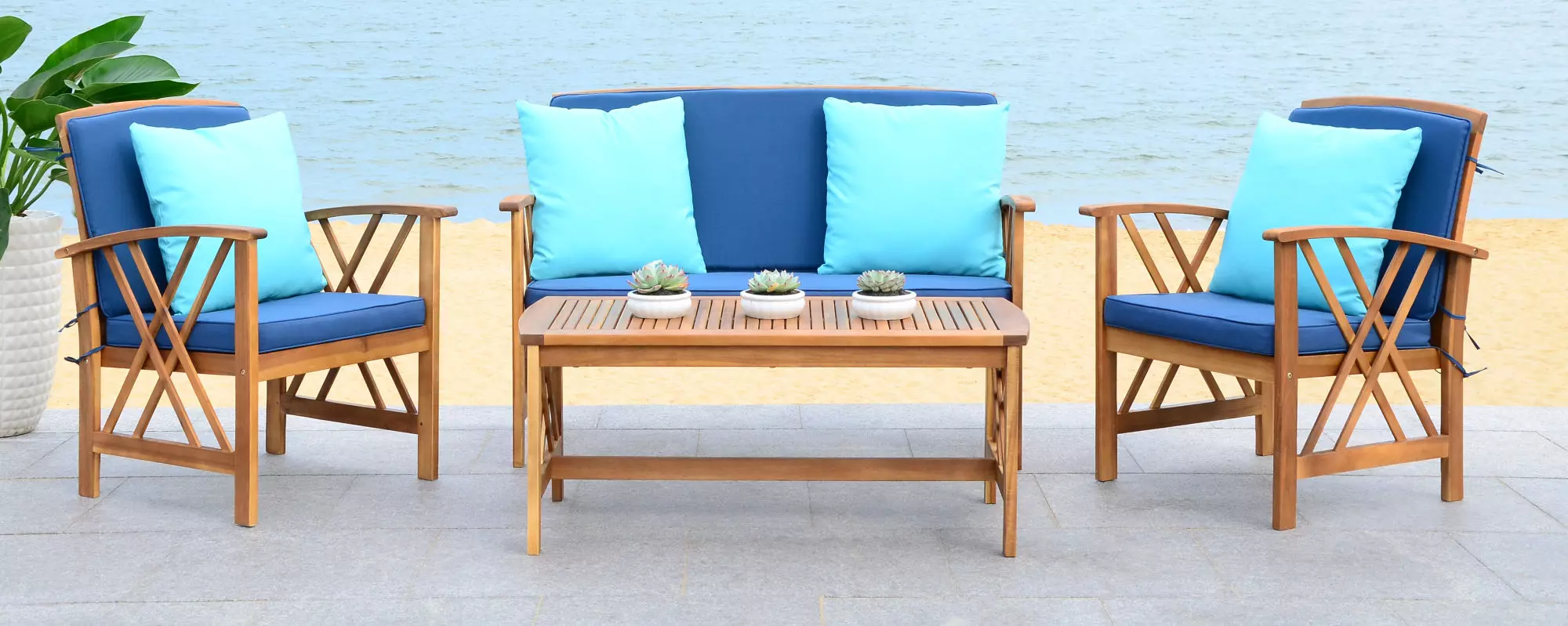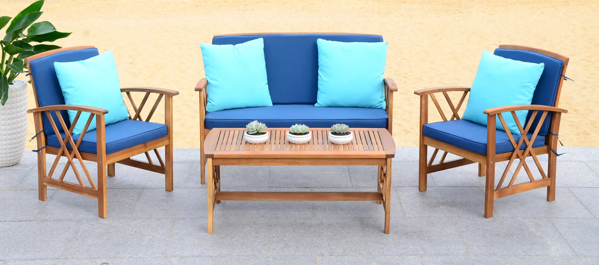 Store outdoor furniture indoors or cover well when not in use. Remove wooden furniture from standing water. Dust regularly with small brush or vacuum. Spills should be taken care of immediately before they harden or stain with a slightly dampened sponge. Do not use bleach solutions.