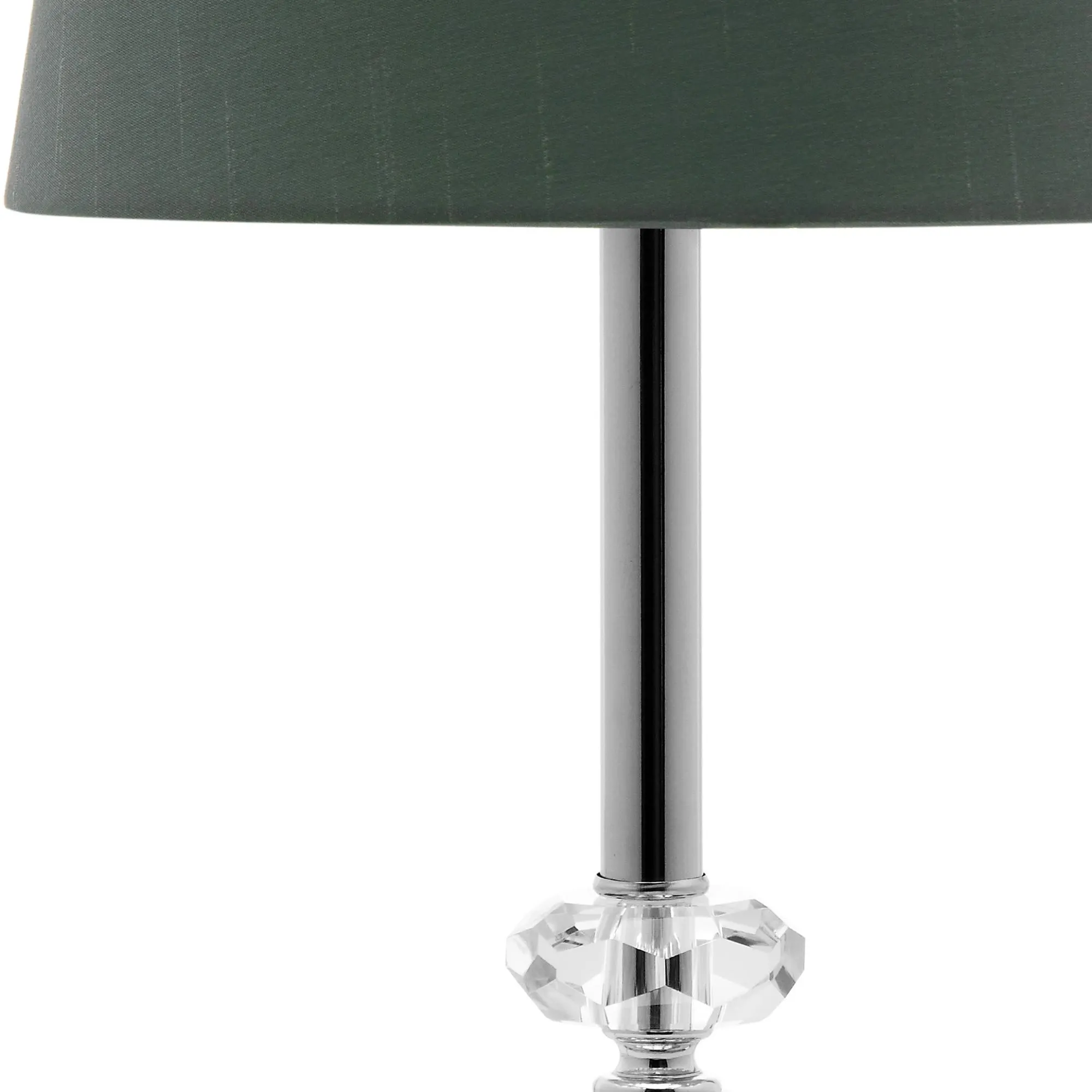 Featuring an eye-catching design, this lamp combines clear crystal elegance with a striking green shade to create an inviting ambiance. The exquisite craftsmanship of the crystal base adds a touch of sophistication to any room. This versatile piece is perfect for your living room, bedroom, or office, seamlessly blending with various decor styles. Its chic aesthetic and calming glow make it a standout addition to your home. The Ashford Crystal Orb Lamp redefines style and grace, offering a beautiful balance of form and function.