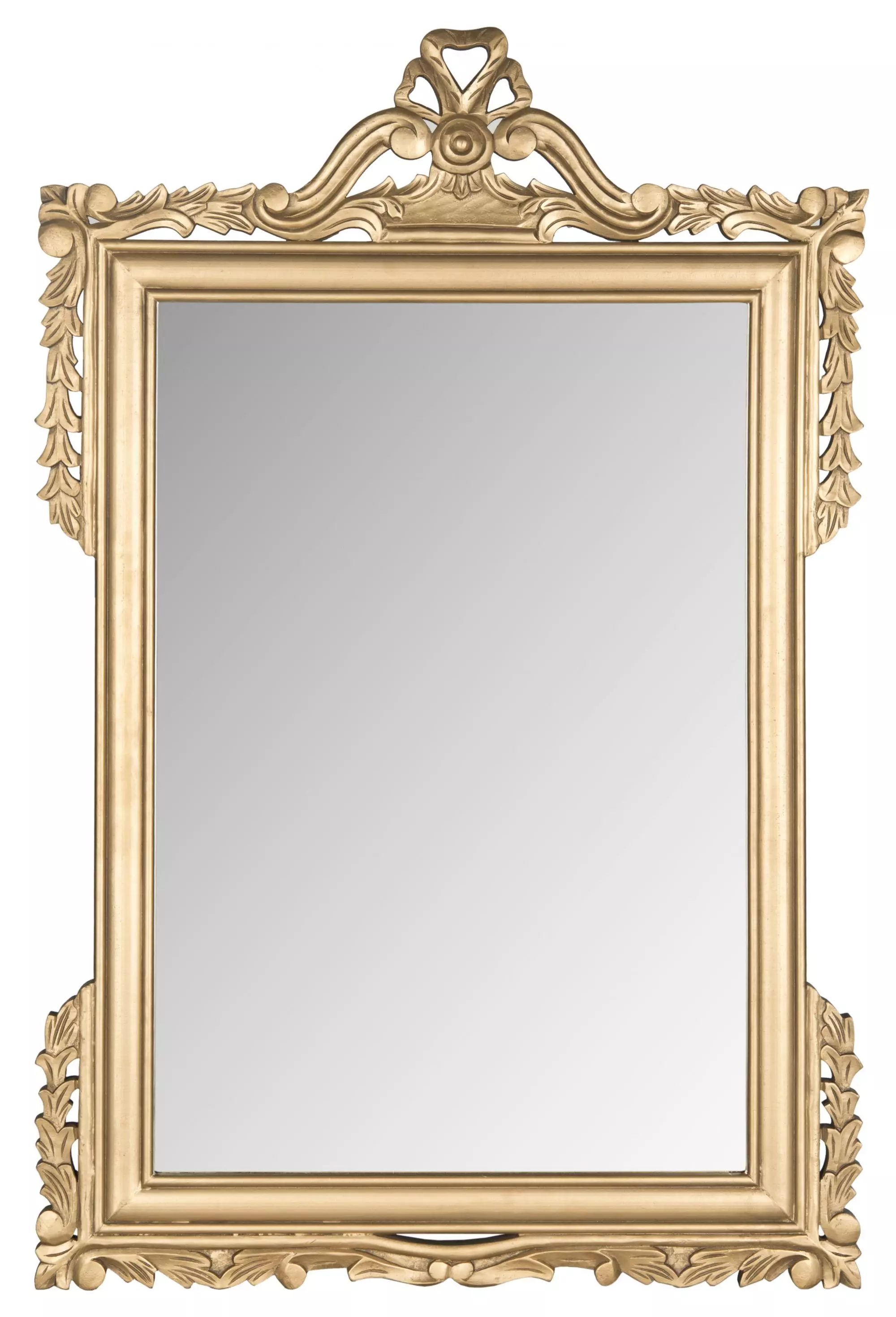 Brimming with scrolls and curves, the highly decorative Pediment mirror by Safavieh brings a touch of elegance to traditional rooms. Beautifully curved to create architectural interest, this rectangular mirror is finished in a lustrous shade of gold.[Use this graceful wall adornment to brighten any space with depth and dimension.