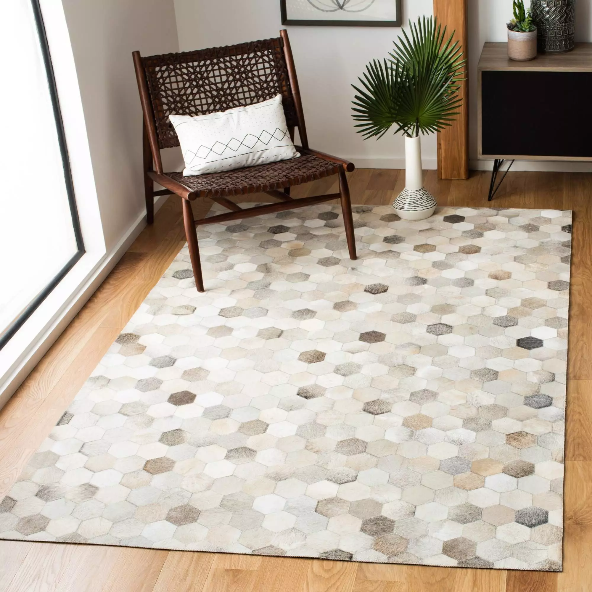 This rug is made of strips of soft, genuine leather.