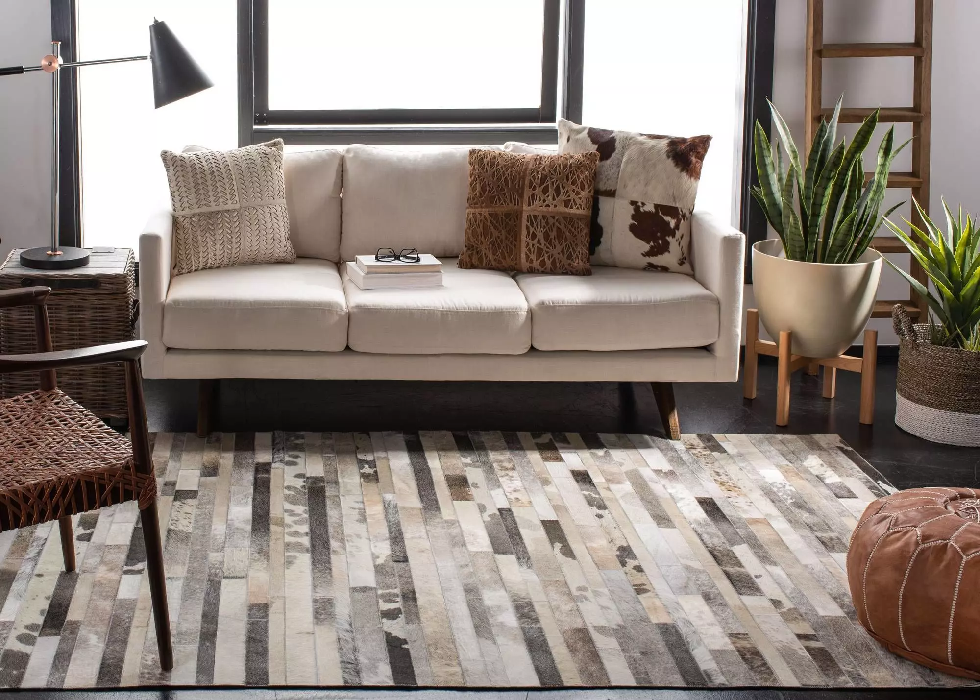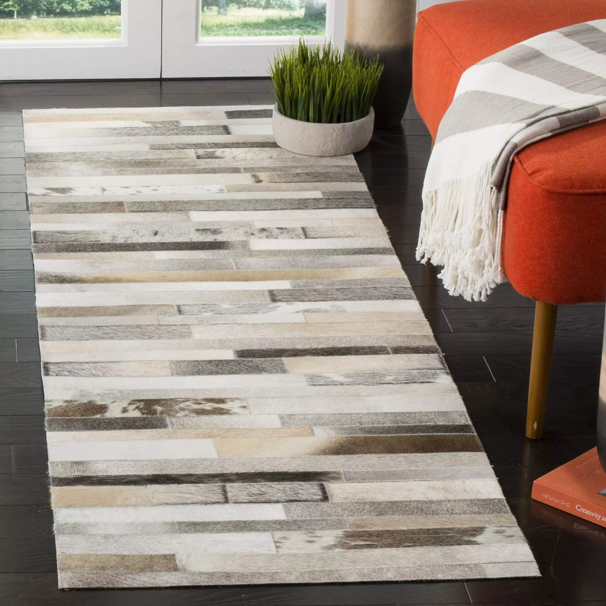 The Safavieh Studio Leather Collection, with its soft, luxurious strips of genuine leather is the perfect, modern accent for your home. Each rug is handmade, ensuring high durability and a long life. The warm colors and soft feel make this the perfect rug to fill that empty space in your home.