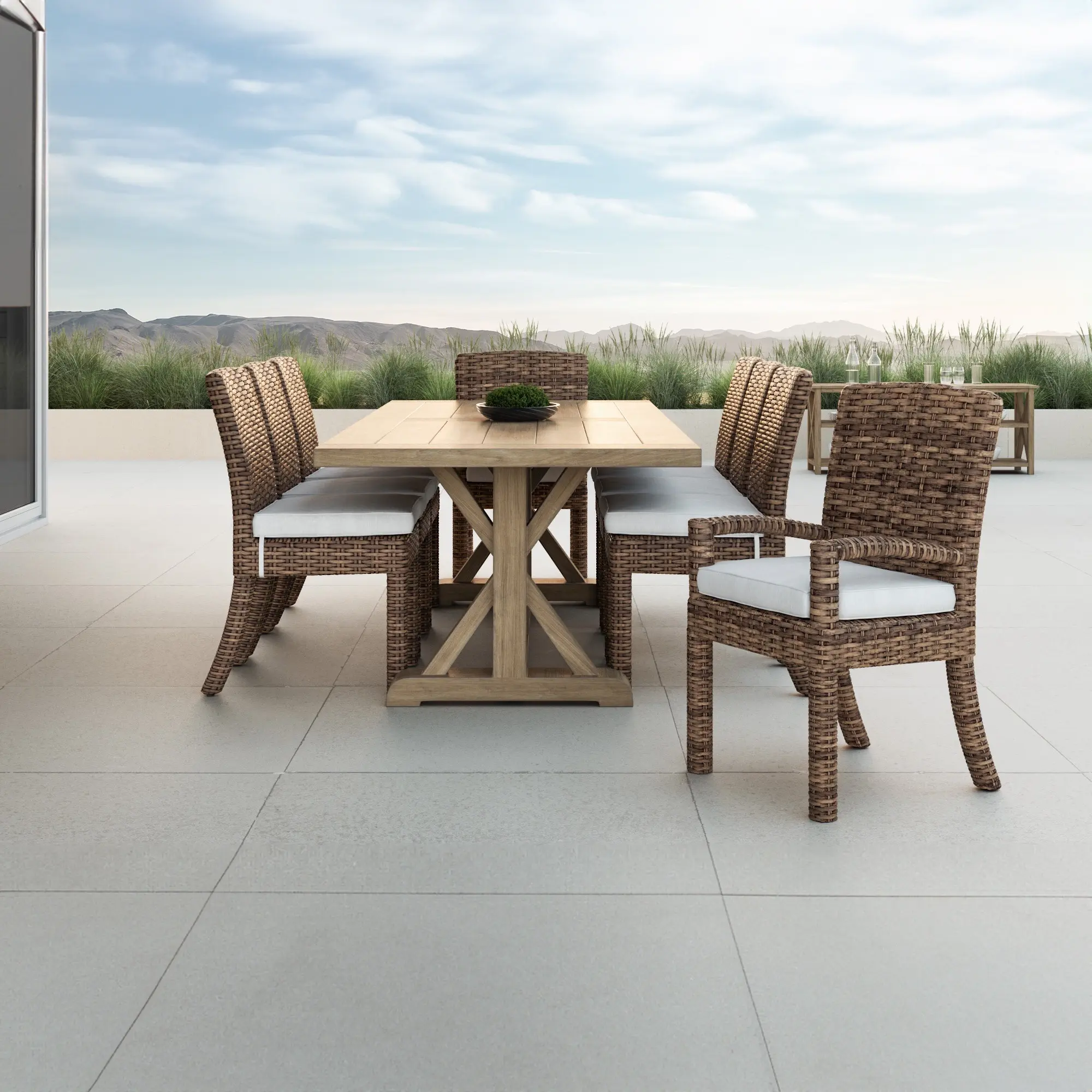Arm Height 26.5"Resin weaves are virtually maintenance free, however; it is recommended to clean the frames on an occasional basis to prevent the build-up of dirt. In extreme climates where temperatures can reach above 100°, place furniture in 50% shaded areas. Cover your outdoor furniture with outdoor covers (sold separately) when left outside during inclement weather, and/or store when not in use. Finally, to maintain or restore the luster of your resin wicker, after-market products are available to refresh UV repellency and water repellency – apply as needed.