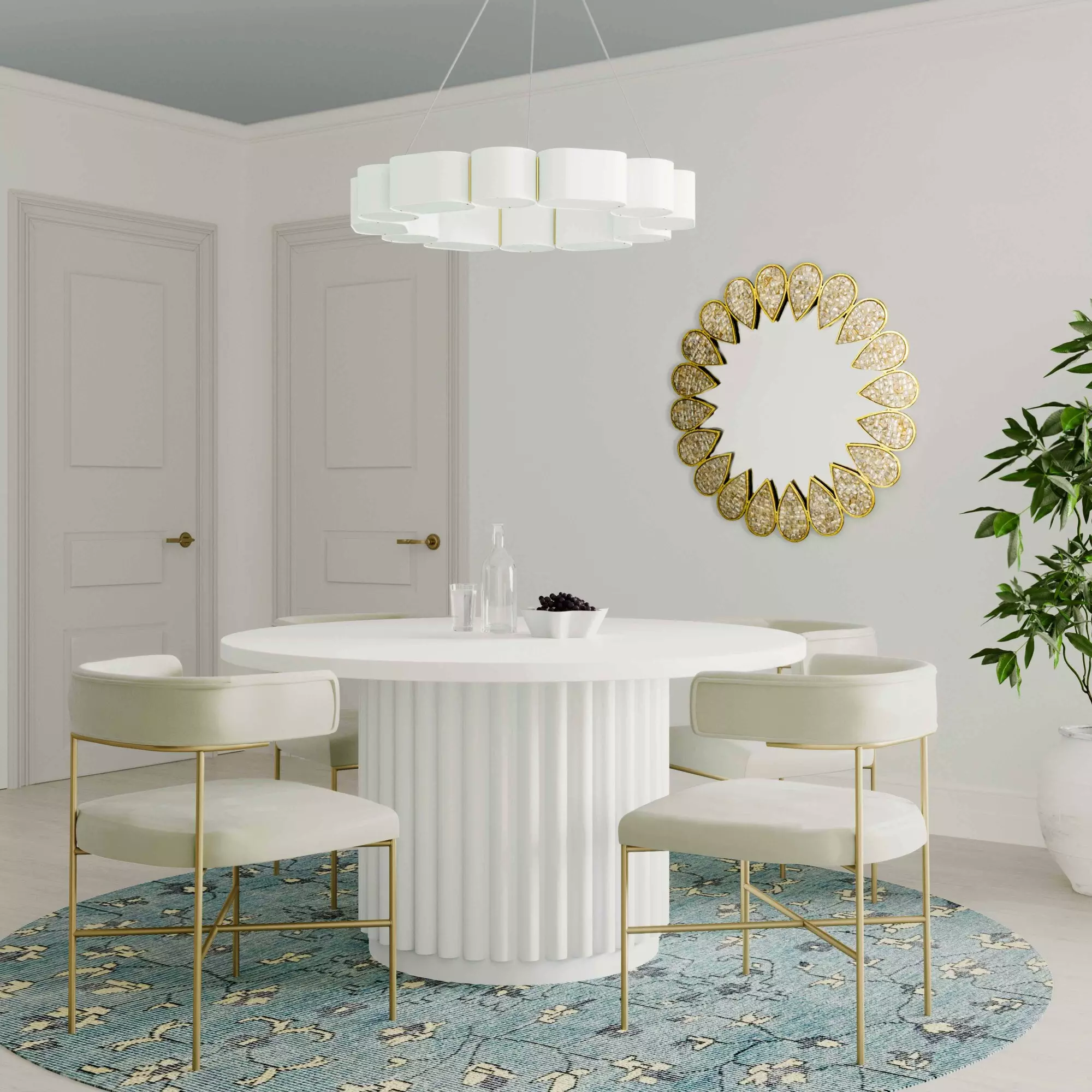 Finished in clean white, its versatile 55" diameter size makes it great for entertaining and convenient for smaller spaces.