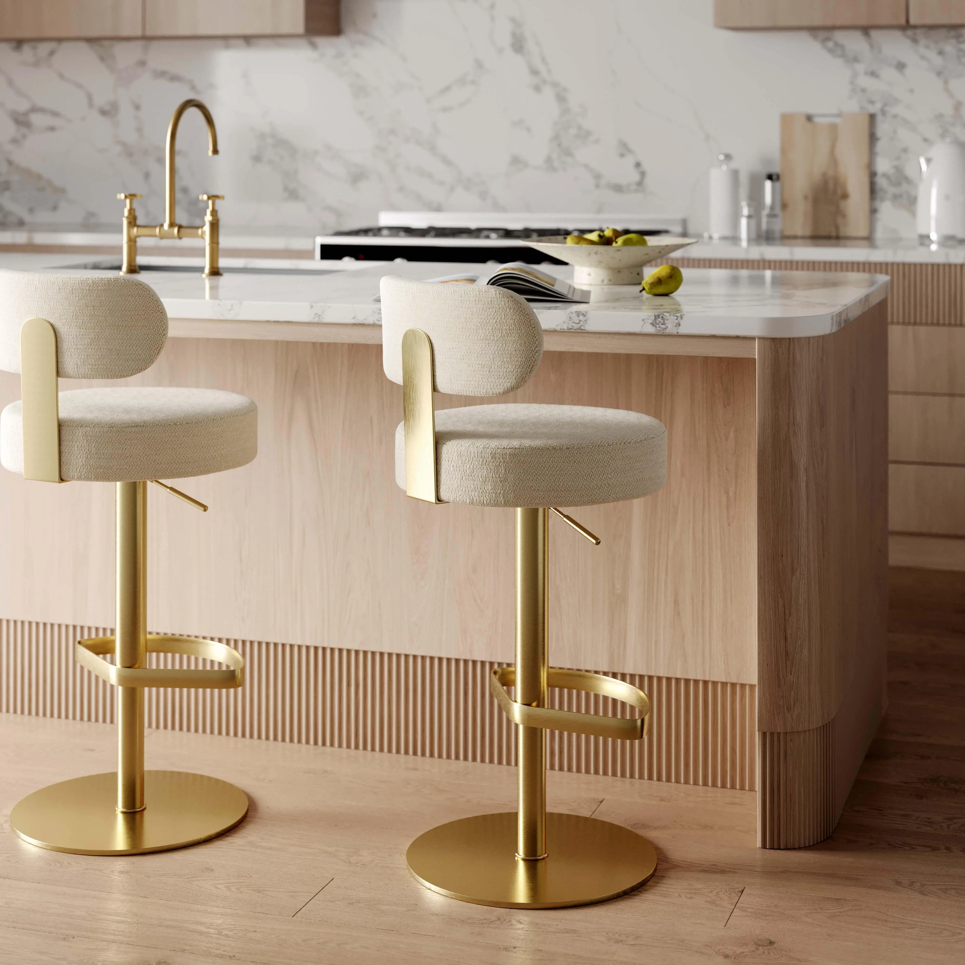 Elevate your bar with the Primrose Cream Textured Performance Fabric Adjustable Stool! Upholstered in a luxurious cream textured performance fabric, this stool features a sturdy stainless steel base and adjustable height for ultimate comfort and flexibility. With a 360-degree swivel and liquid-repellent fabric, the Primrose Cream Textured Performance Fabric Adjustable Stool combines modern functionality with enduring elegance, making it the perfect addition.