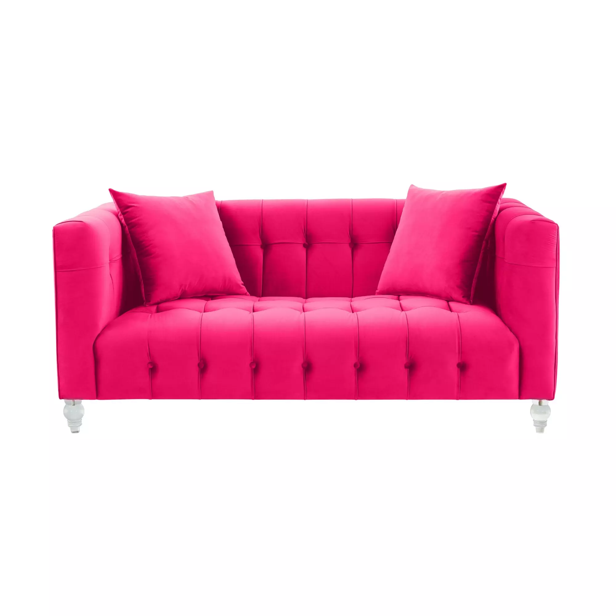Our Bea Loveseat is a true beauty. This rich velvet upholstered piece is designed with a deep seat, luxe tufting, and Lucite legs. Bea adds style and color to any room. This vibrant piece comes in sofa size and multiple color options.