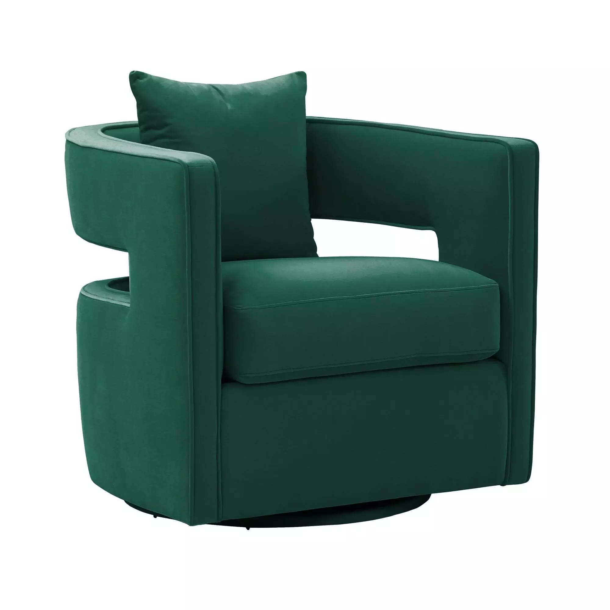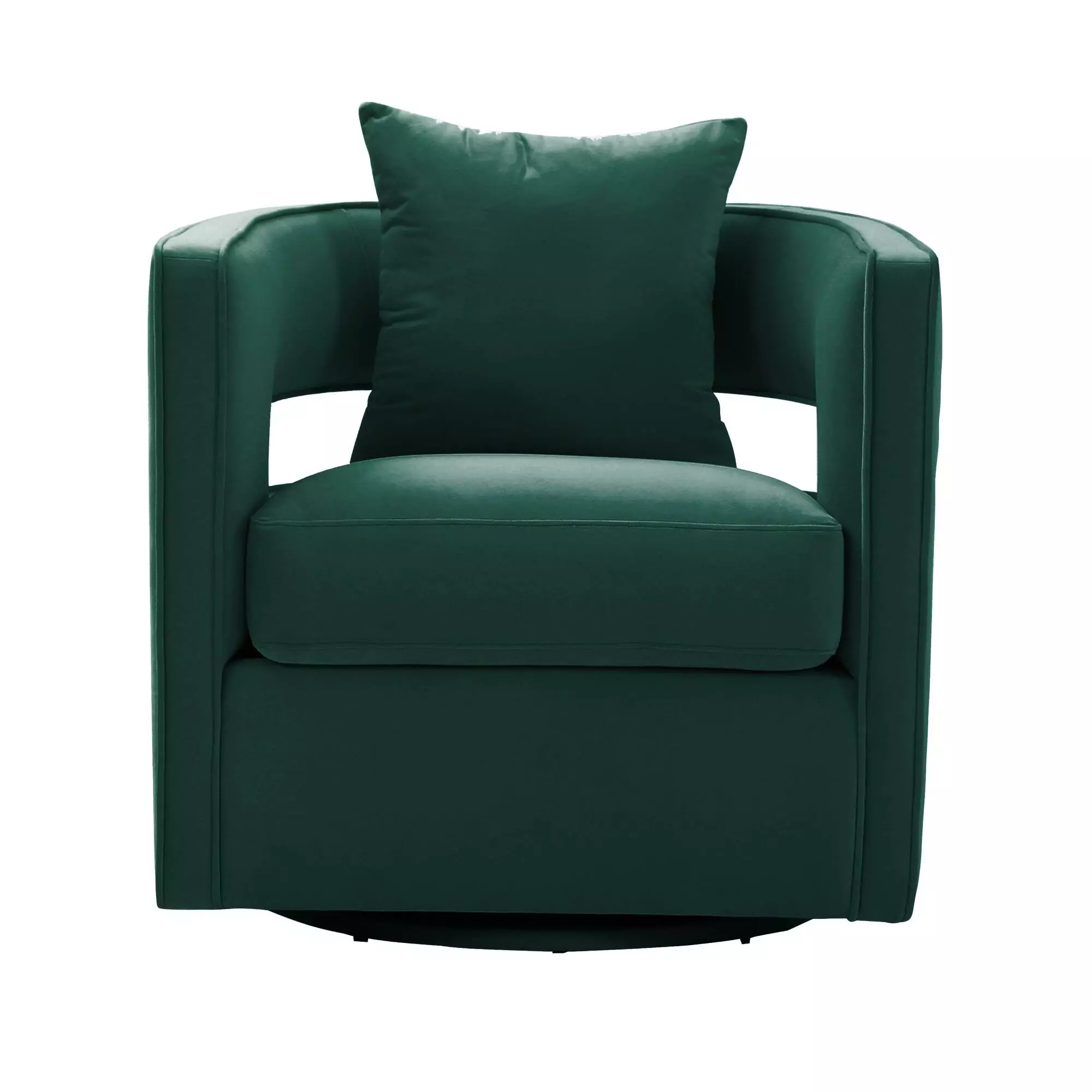 The minimalistic Kennedy swivel chair is versatile and stylish. A comfortable foam fill makes it as plush and inviting as it looks, while the solid wood frame and stainless steel legs set a sturdy foundation.