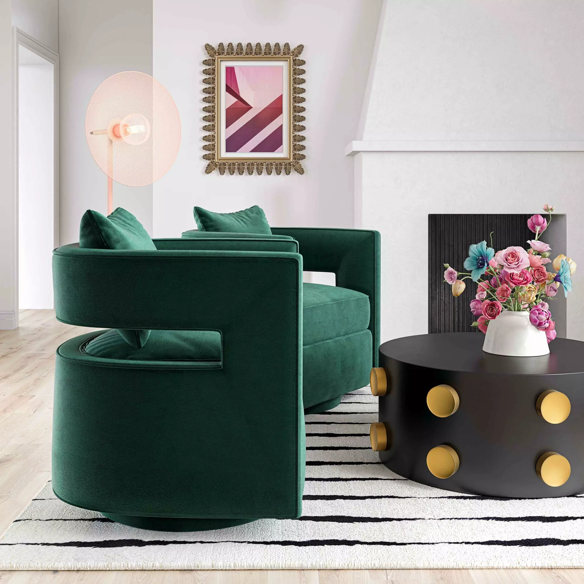 This eye-catching chair will add a pop of style to any space. Sumptuous velvet available in multiple color options.