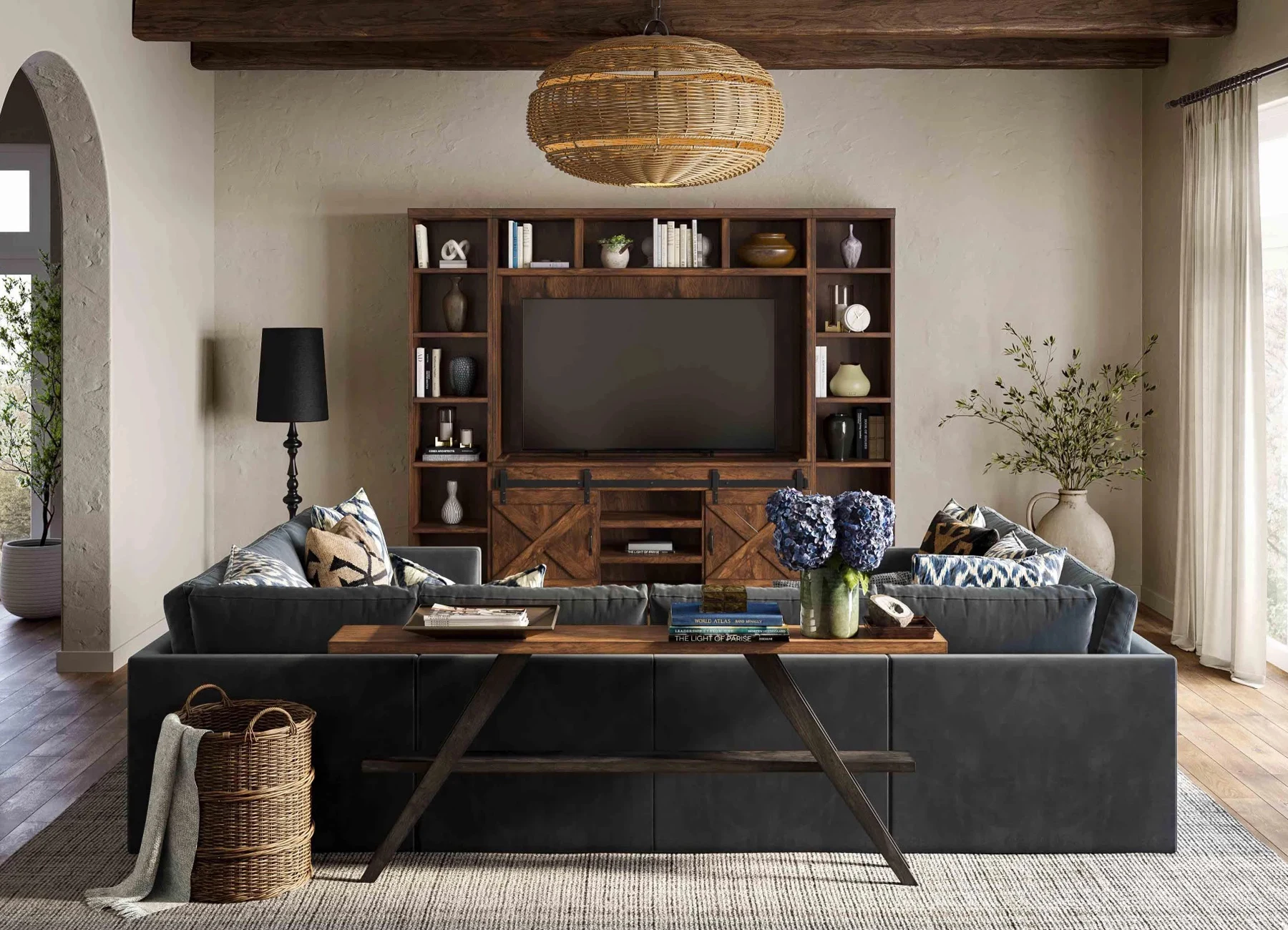 Media consoles are sturdy staples that not only support your high-tech televisions and gadgets but also cleverly conceal wires and media clutter, maintaining a sleek look. Available in a variety of styles, from minimalist modern to rustic farmhouse, they can serve as the focal point of the room or a subtle complement to your decor. Beyond just holding your electronics, many consoles offer ample storage for everything from gaming accessories to movie collections, making them a practical yet chic addition to any entertainment space.