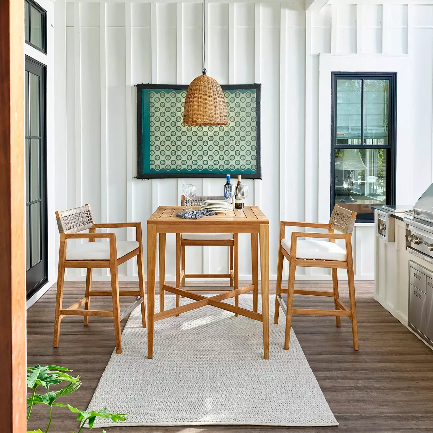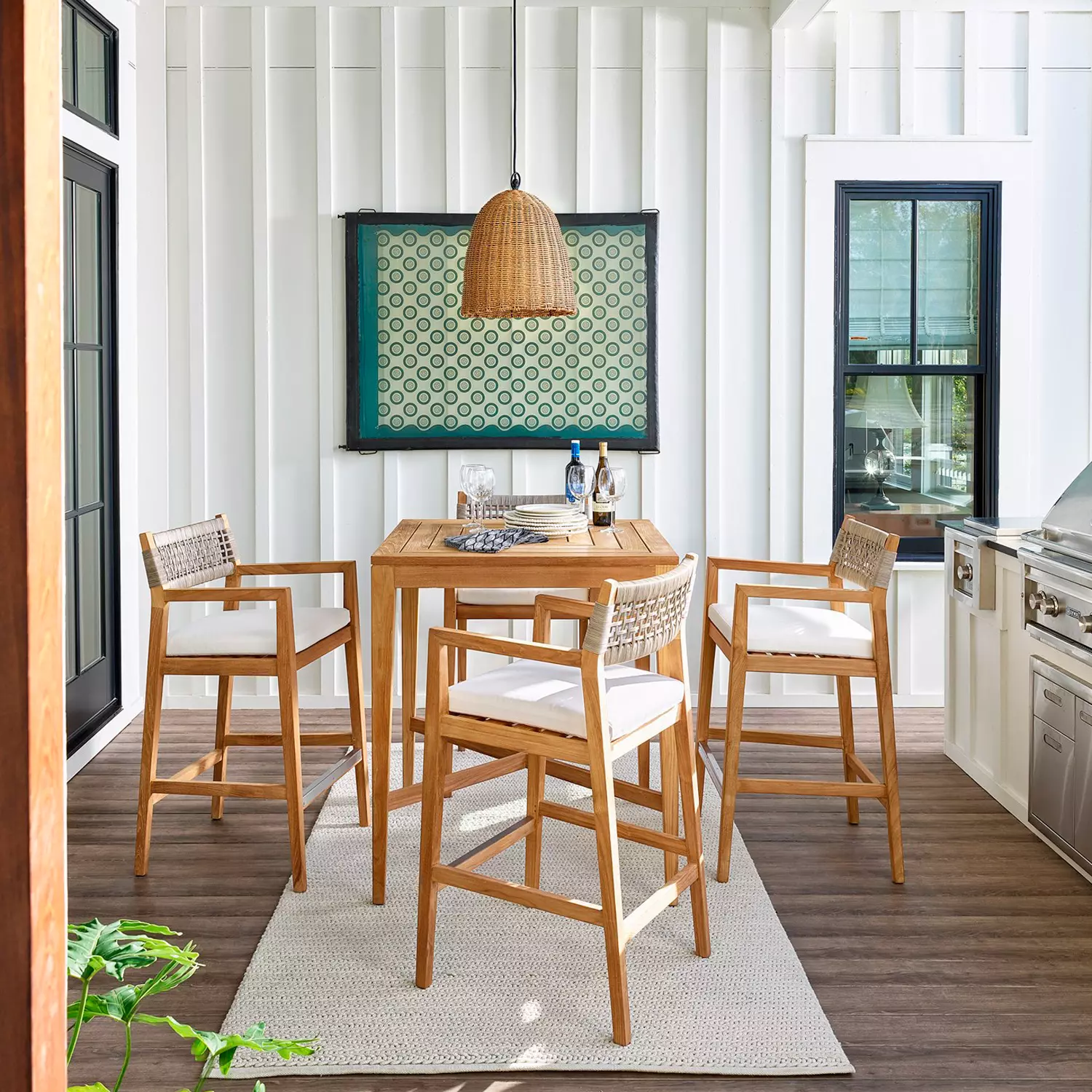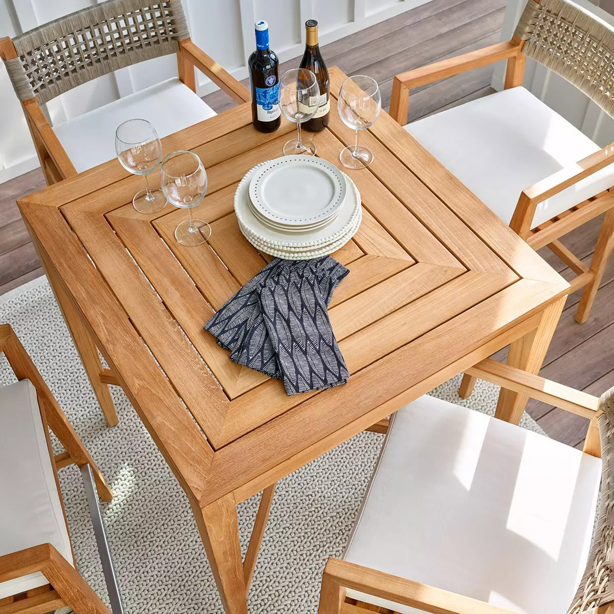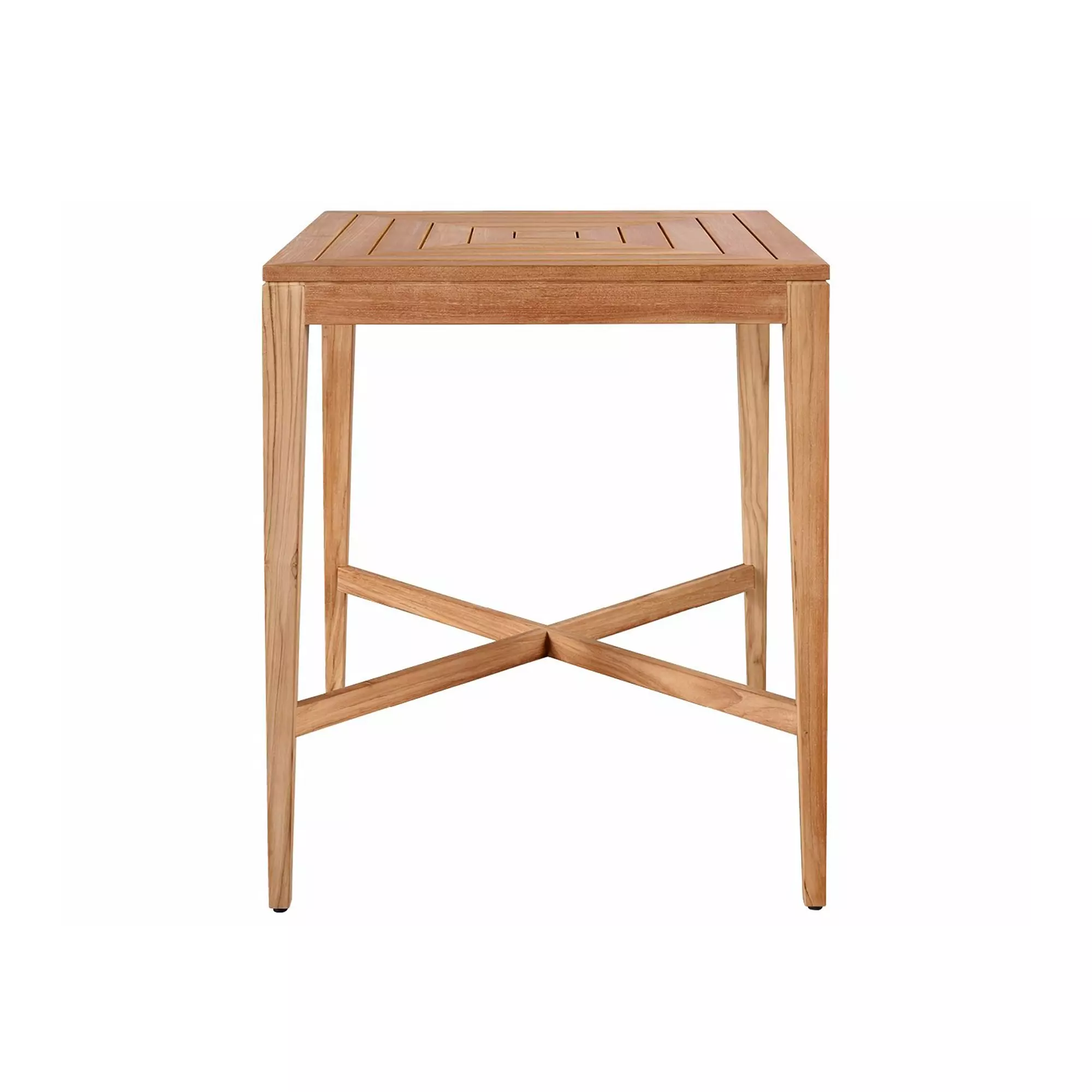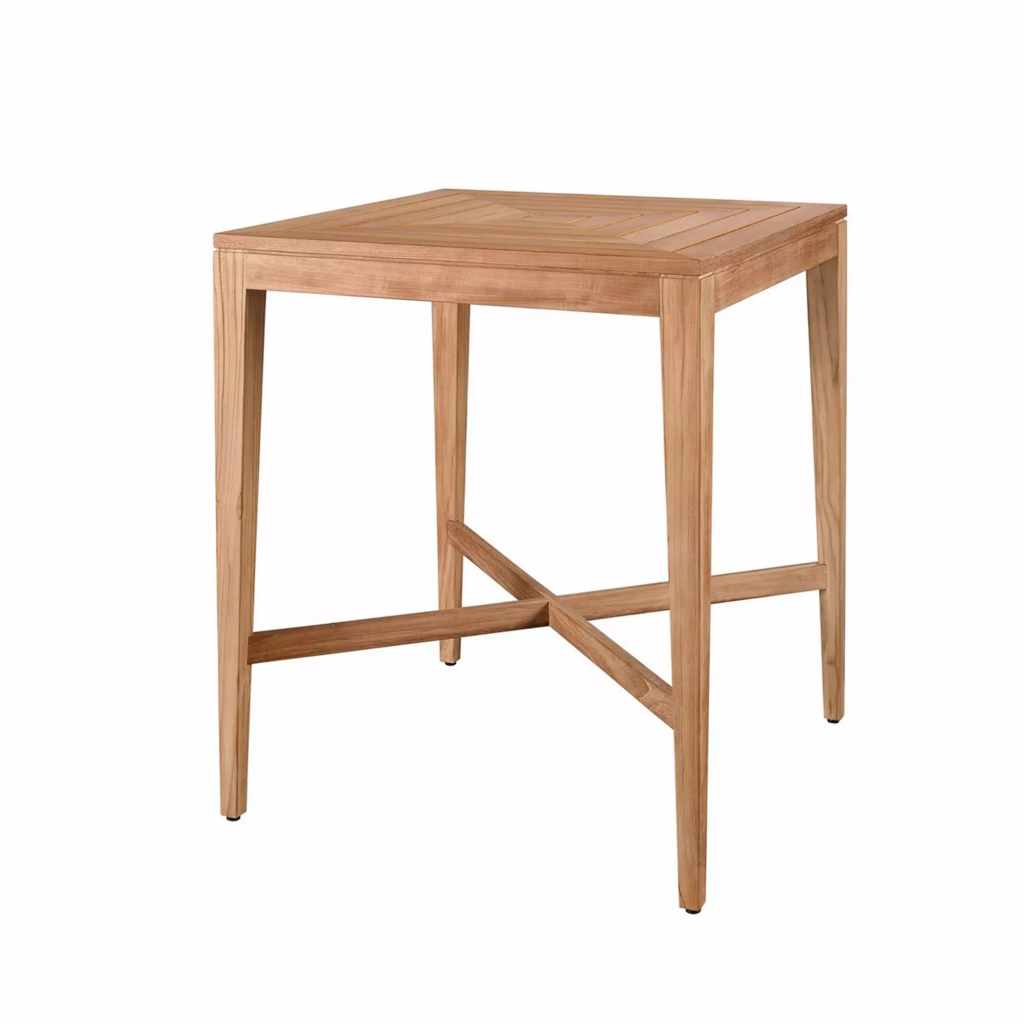 Enjoying a classic appeal, the Chesapeake Bar Table is the perfect spot to enjoy a cold beverage, casual dinner, or card game in the comfort of your backyard. This beautful table is made with 100% Grade-A Teak. Grade-A teak maintains its integrity as it weathers gracefully while resisting degradation. The natural tendency for A-Grade teak is to patina beautifully into a silvery-grey look, which develops over time in natural conditions including sunlight and ambient moisture. This sustainable wood is a perfect natural material for luxury outdoor furniture because it offers the finest protection and incredible good looks. X-Stretcher.